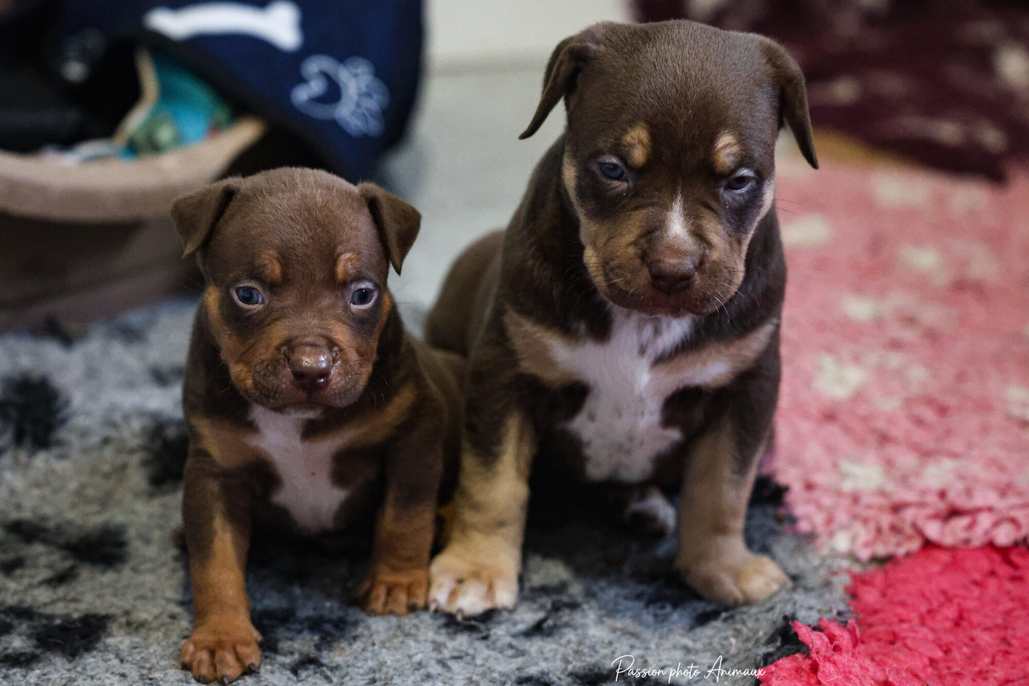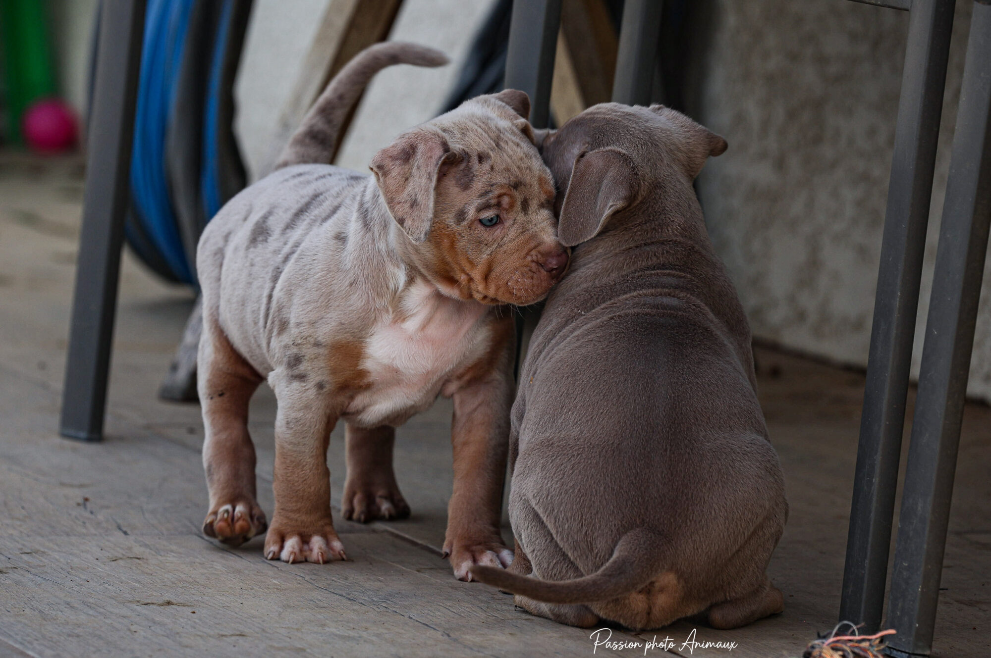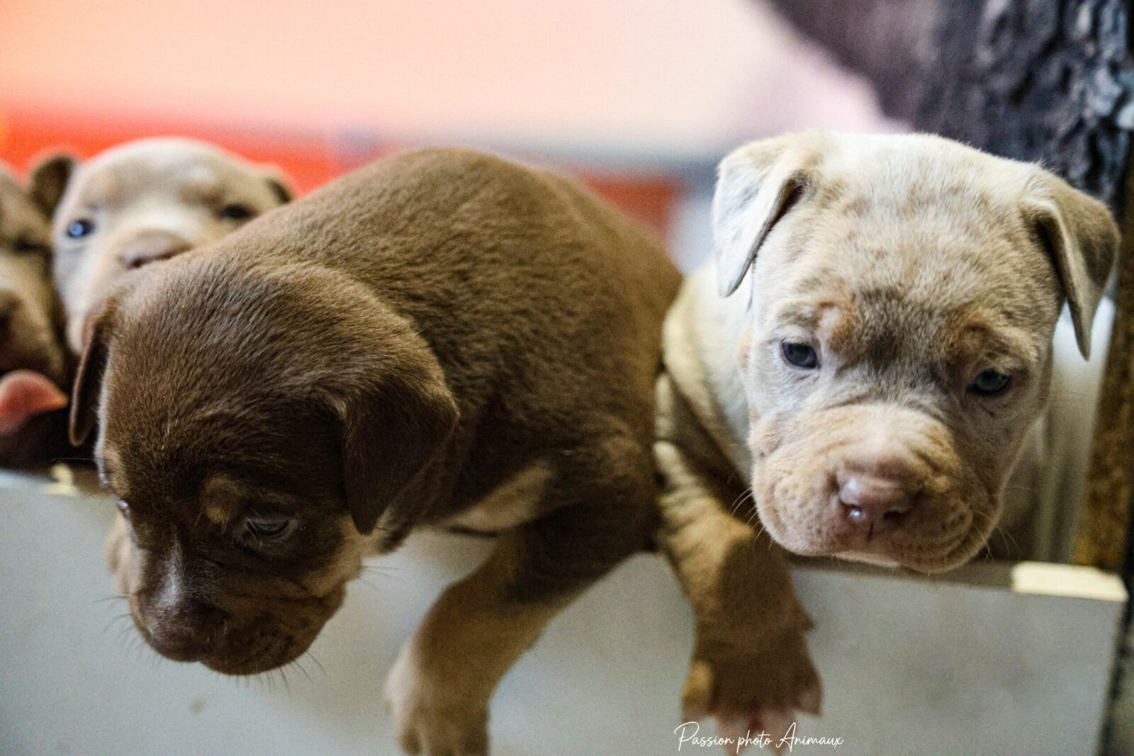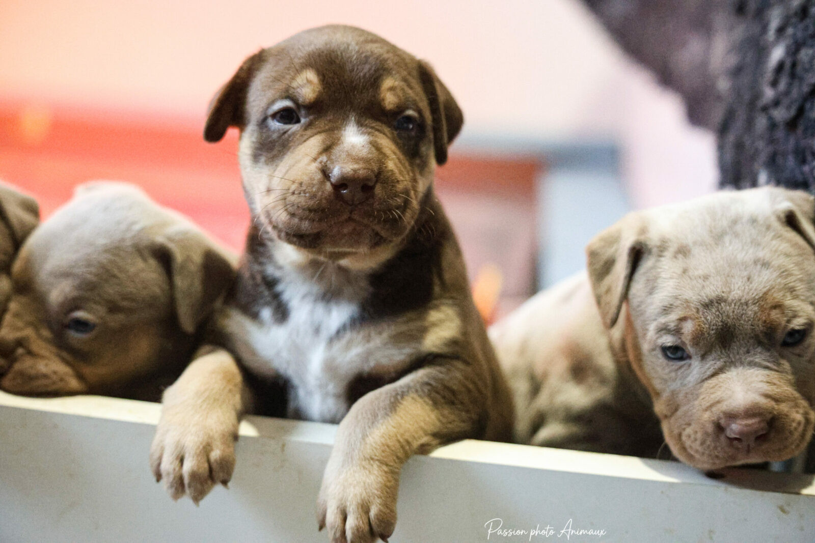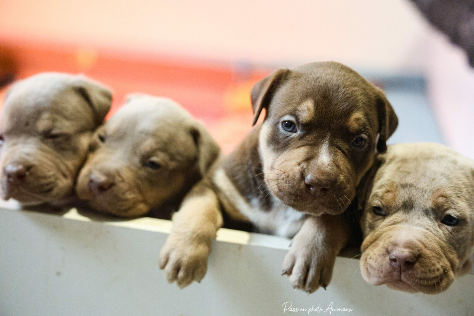 Retrouvez ici nos chiots American Bully XL prêts à rejoindre leur nouvelle famille. Tous nos petits sont issus de mariages rigoureux, sélectionnés pour leur morphologie et leur santé, et sont tous inscrits au pedigree ABKC Adopter l’un de nos chiots American Bully XL, c’est rejoindre la WOB Family avec un suivi éducation à vie.