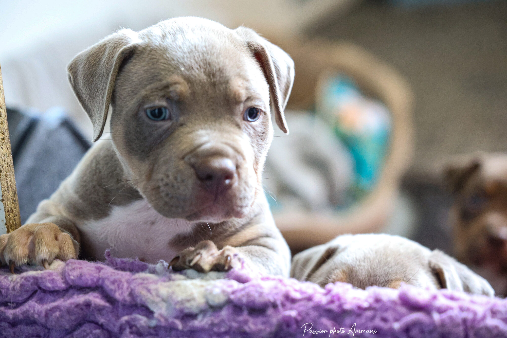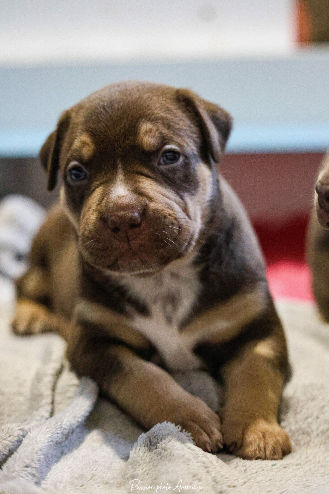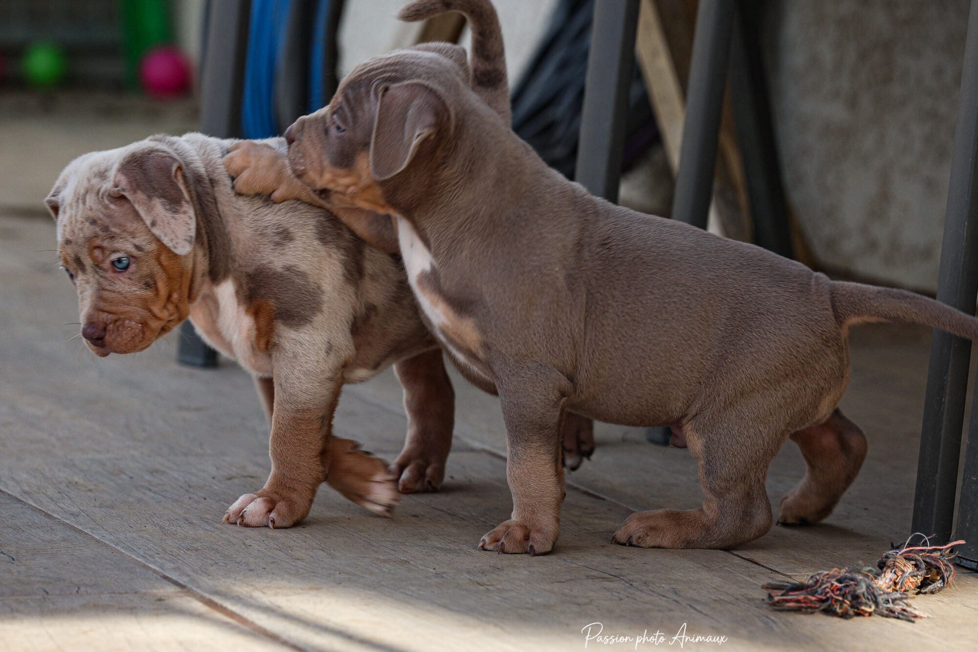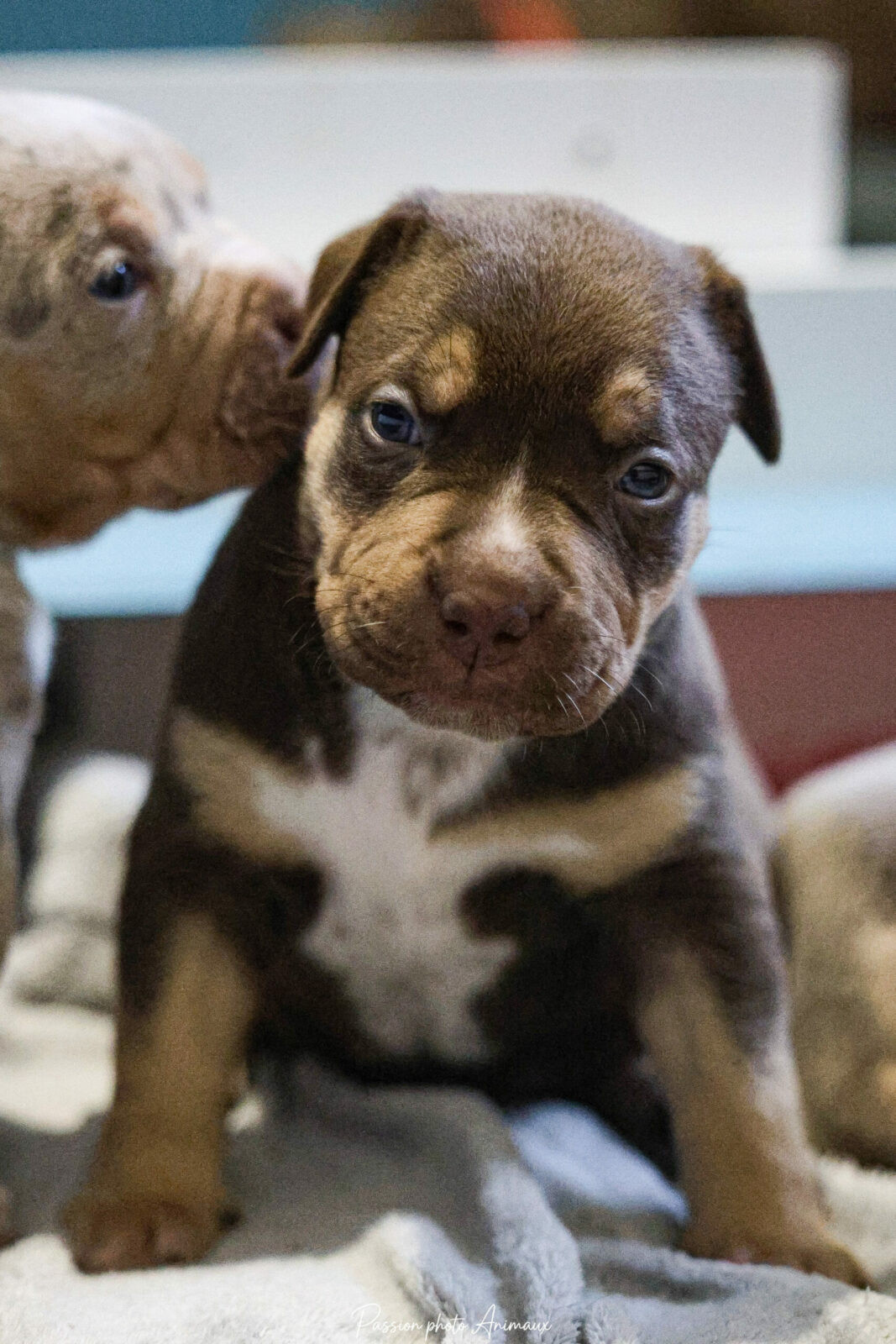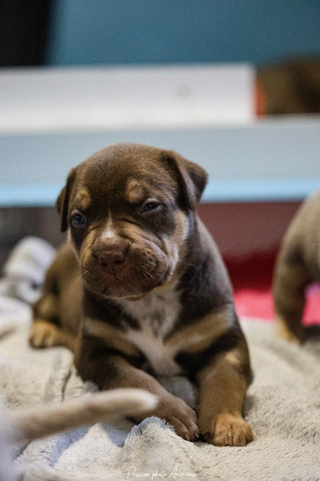 Retrouvez ici nos chiots American Bully XL prêts à rejoindre leur nouvelle famille. Tous nos petits sont issus de mariages rigoureux, sélectionnés pour leur morphologie et leur santé, et sont tous inscrits au pedigree ABKC Adopter l’un de nos chiots American Bully XL, c’est rejoindre la WOB Family avec un suivi éducation à vie.