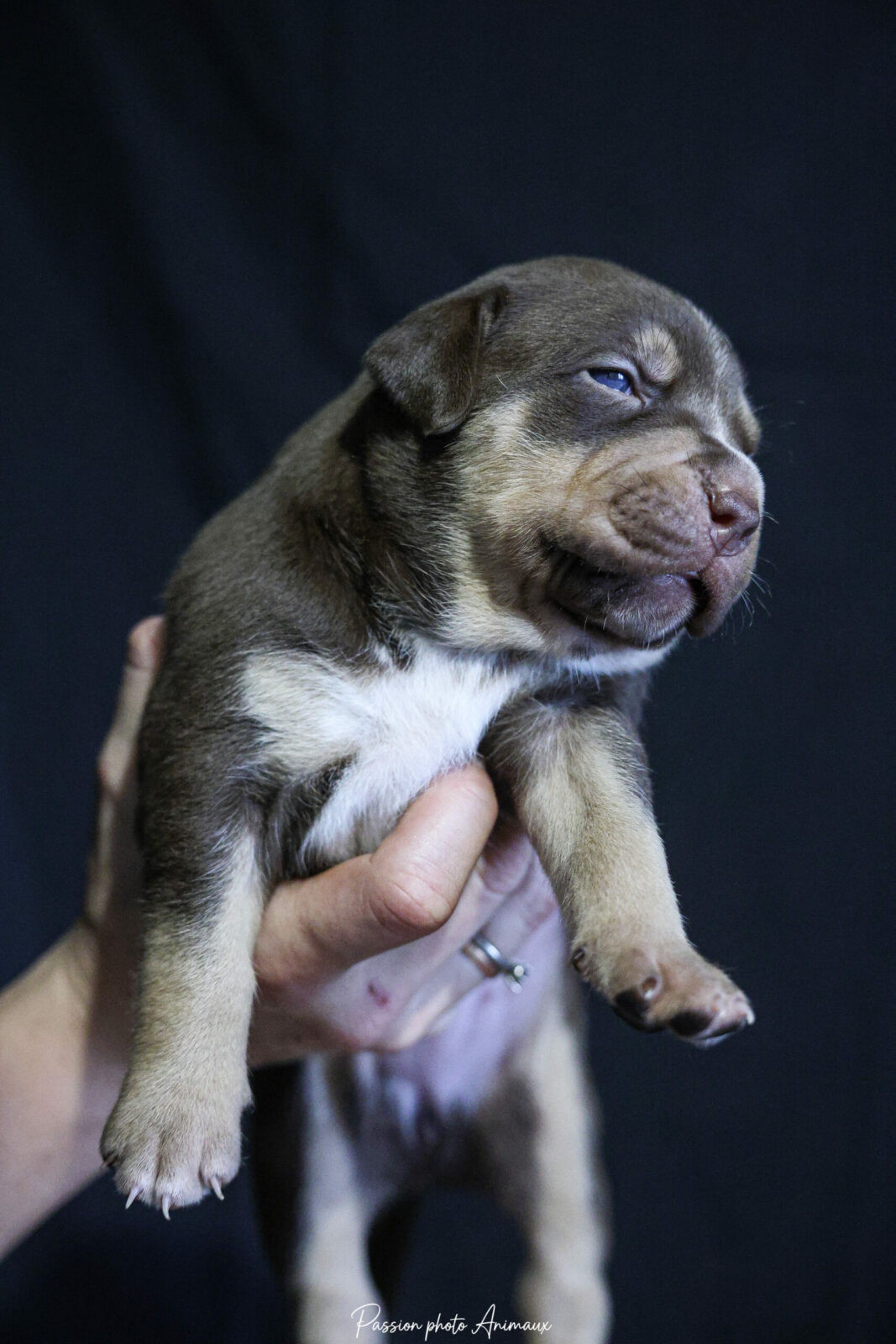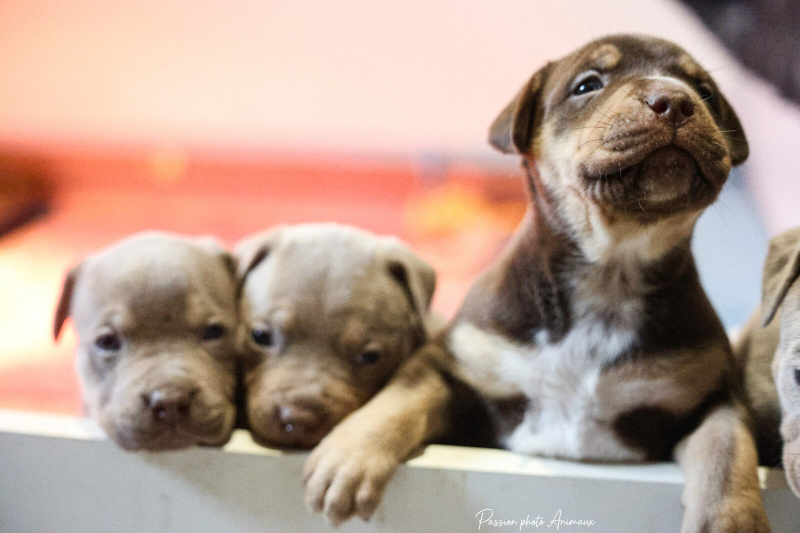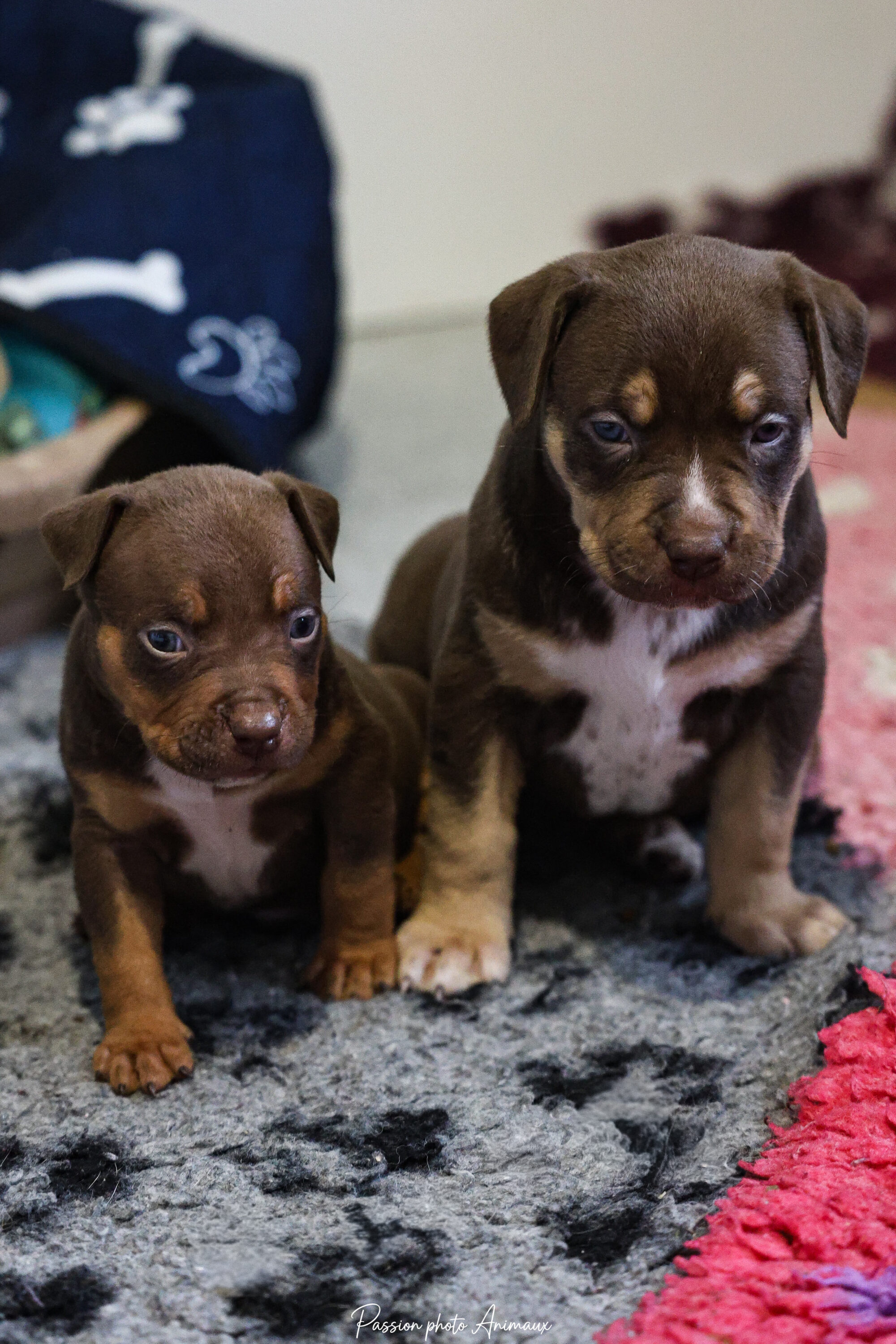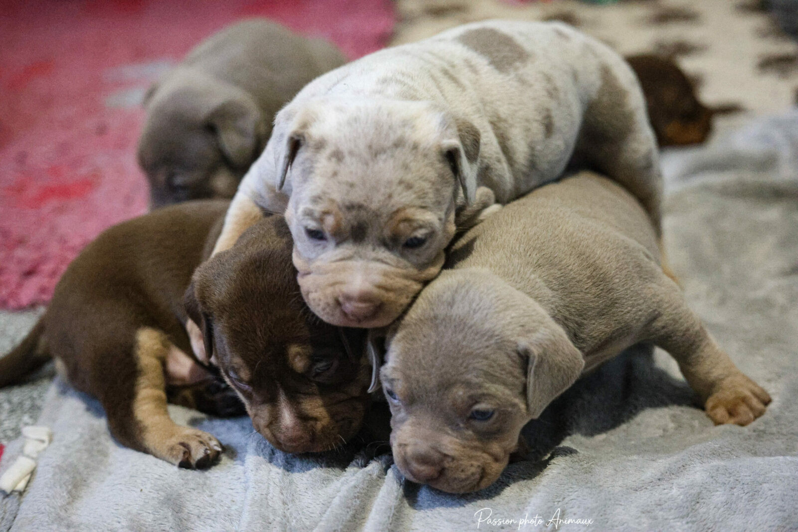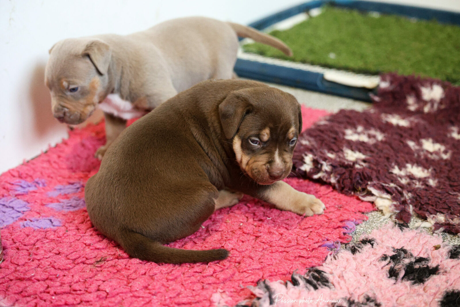 Retrouvez ici nos chiots American Bully XL prêts à rejoindre leur nouvelle famille. Tous nos petits sont issus de mariages rigoureux, sélectionnés pour leur morphologie et leur santé, et sont tous inscrits au pedigree ABKC Adopter l’un de nos chiots American Bully XL, c’est rejoindre la WOB Family avec un suivi éducation à vie.