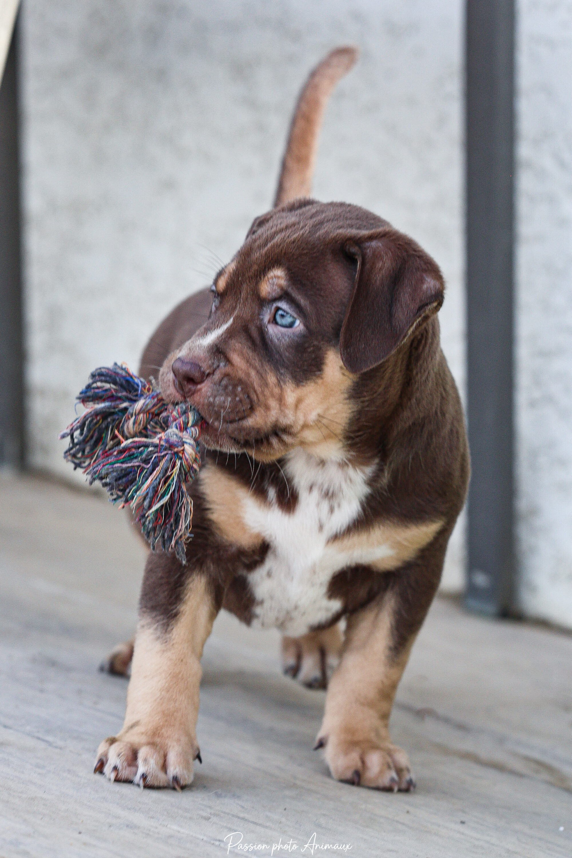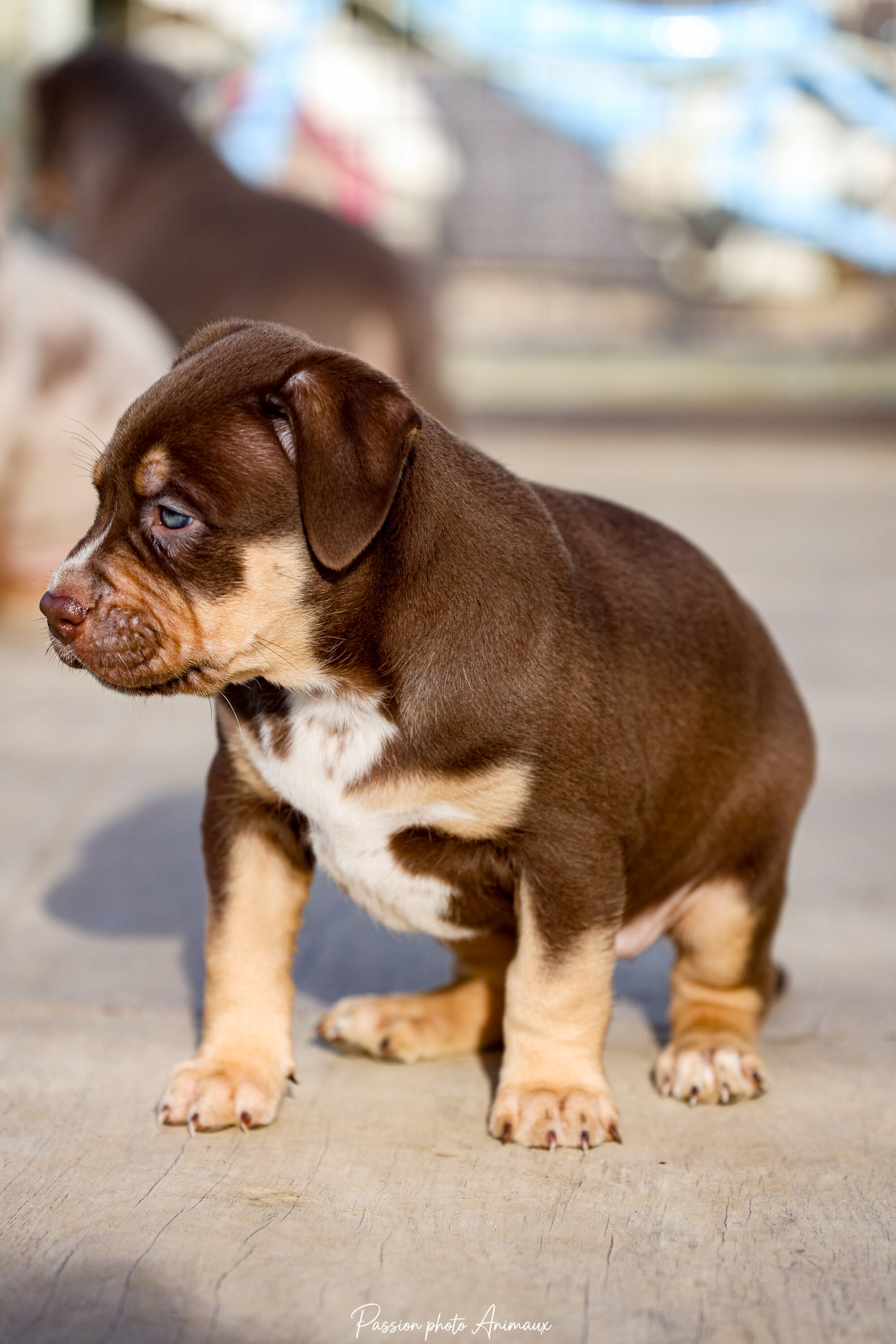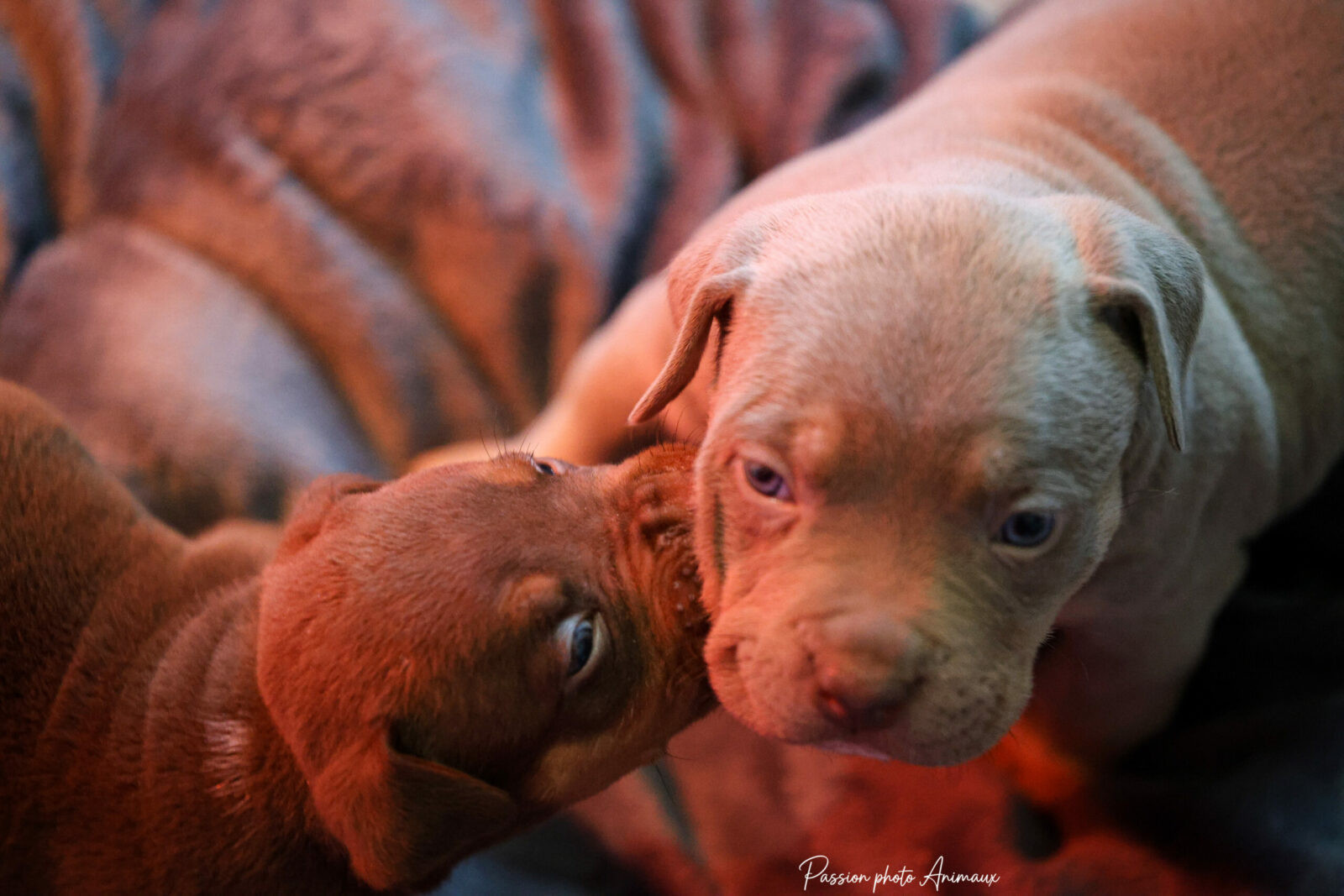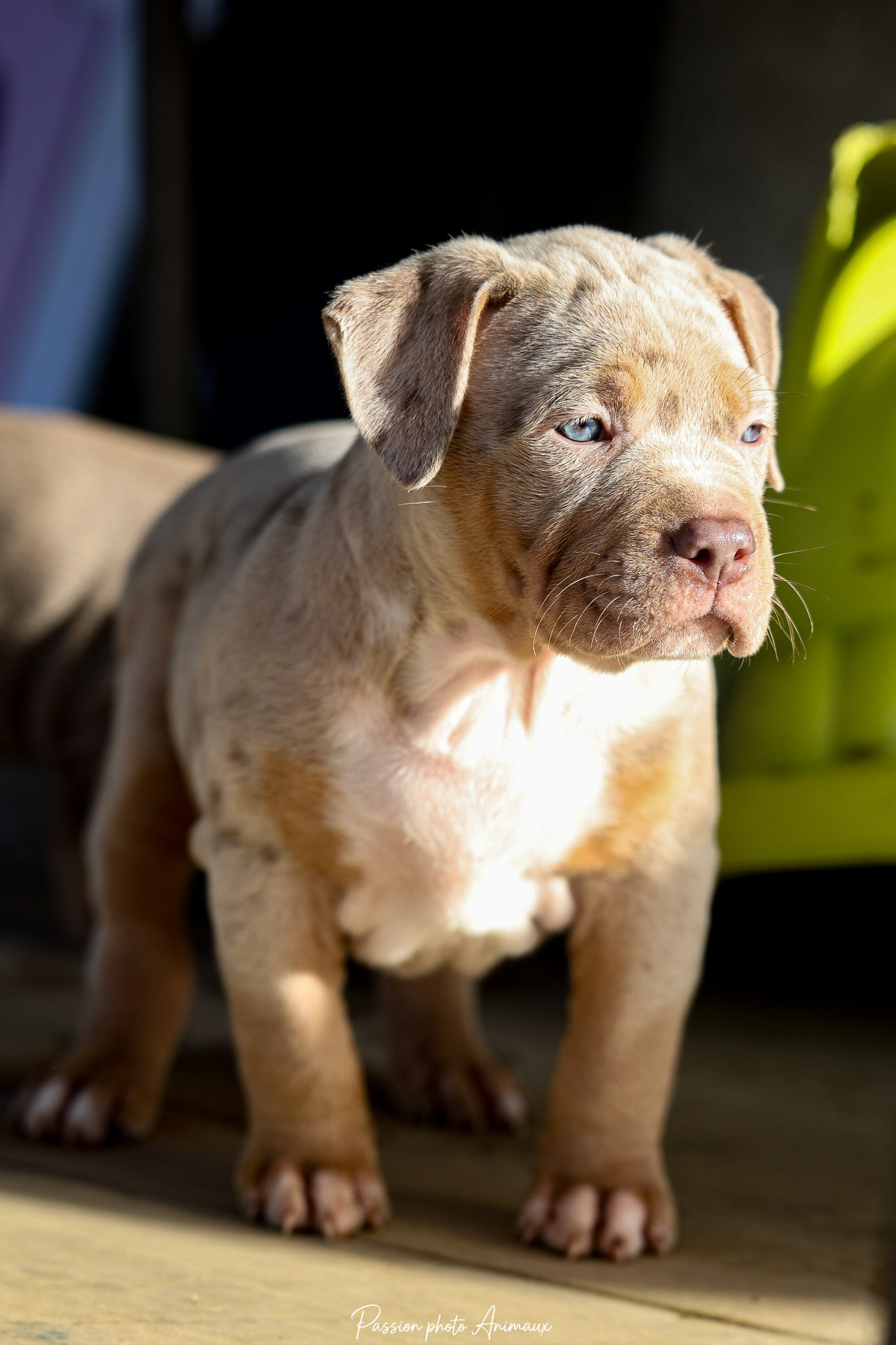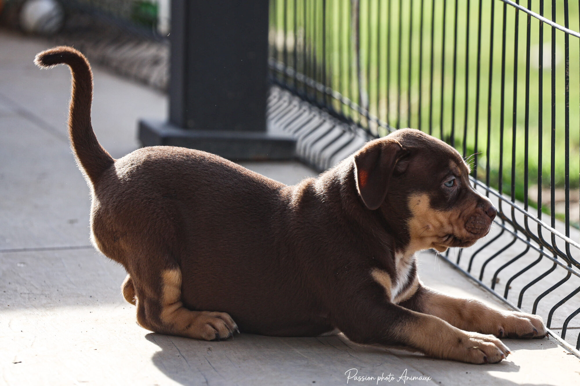 Retrouvez ici nos chiots American Bully XL prêts à rejoindre leur nouvelle famille. Tous nos petits sont issus de mariages rigoureux, sélectionnés pour leur morphologie et leur santé, et sont tous inscrits au pedigree ABKC Adopter l’un de nos chiots American Bully XL, c’est rejoindre la WOB Family avec un suivi éducation à vie.