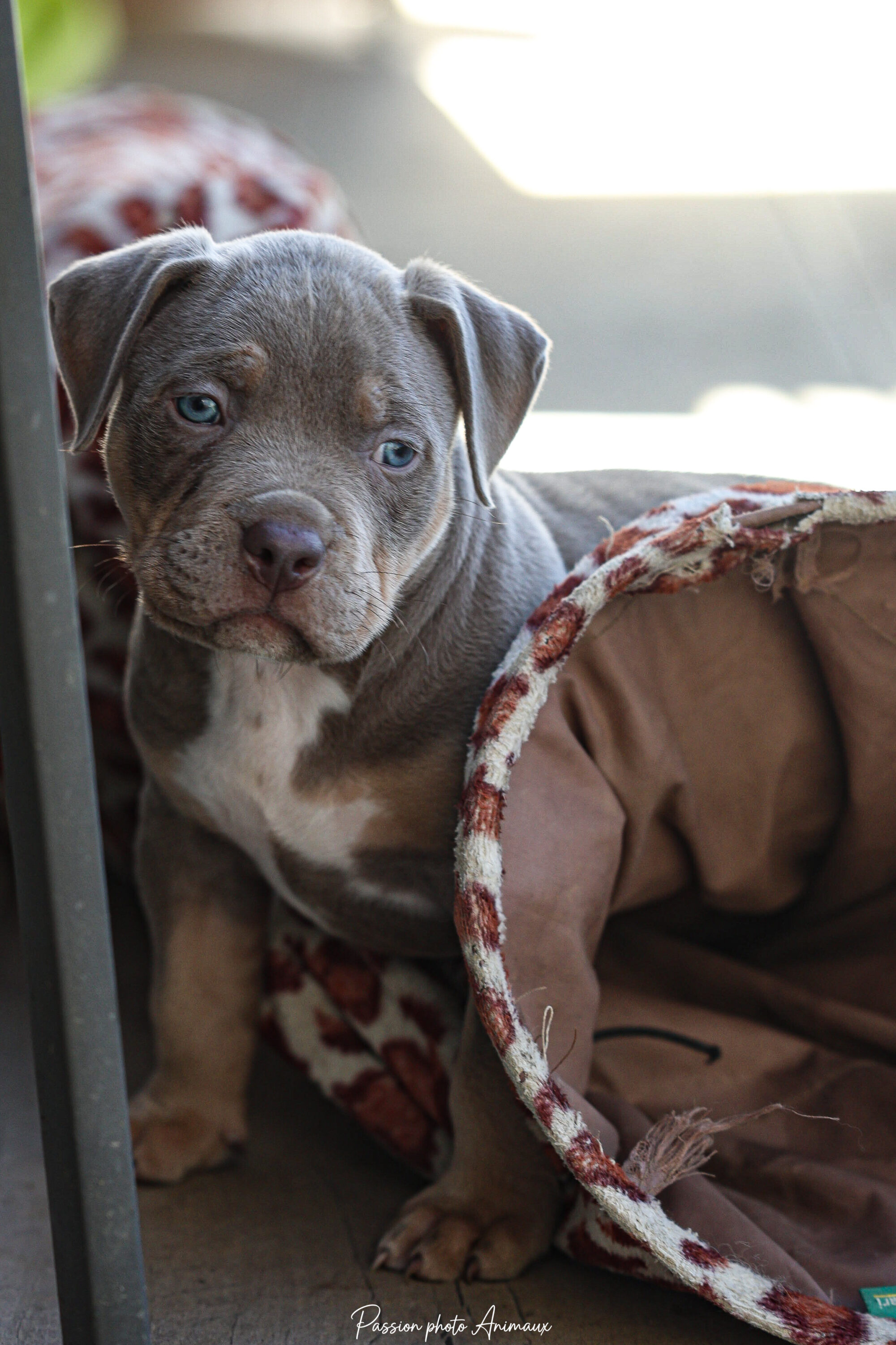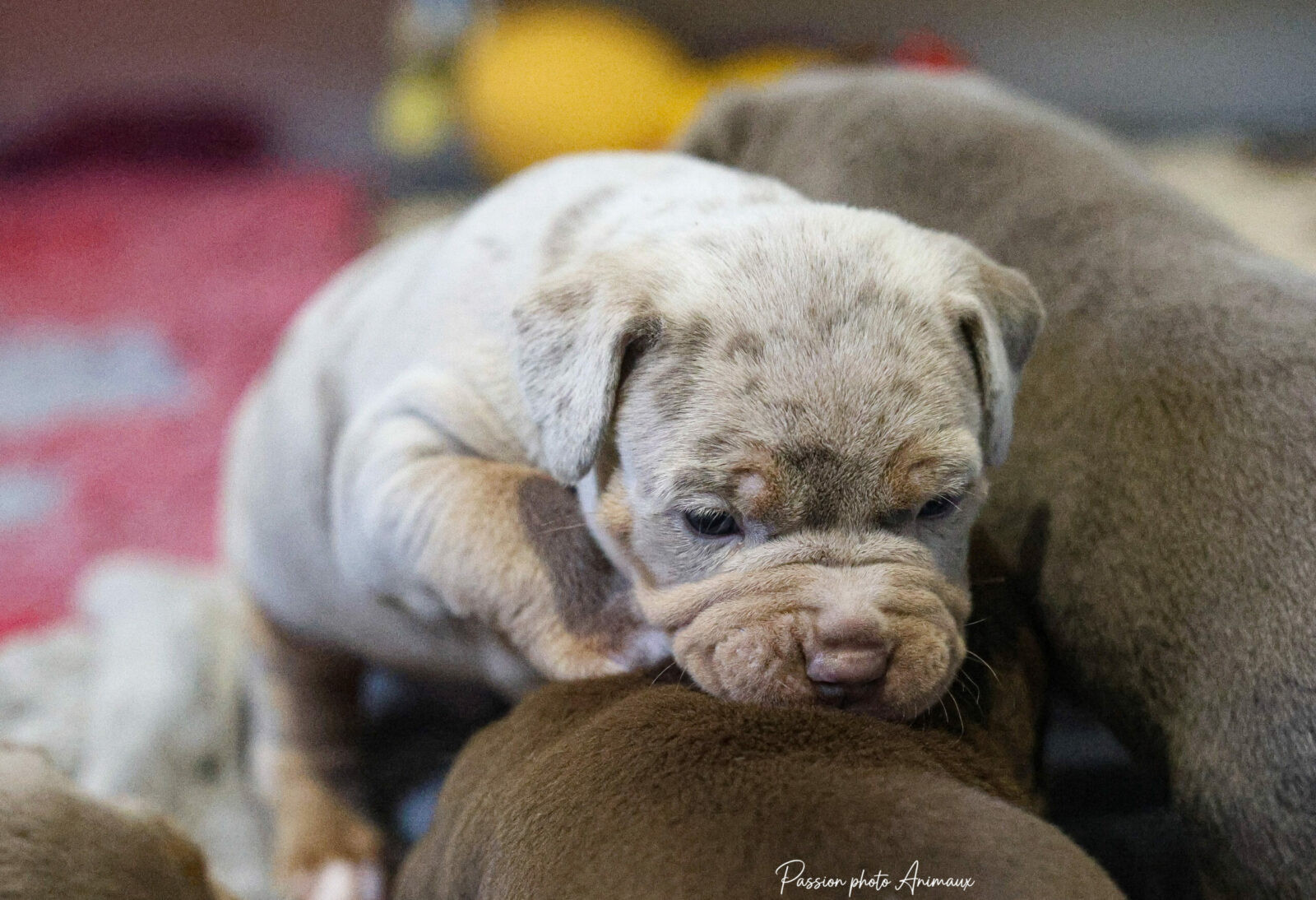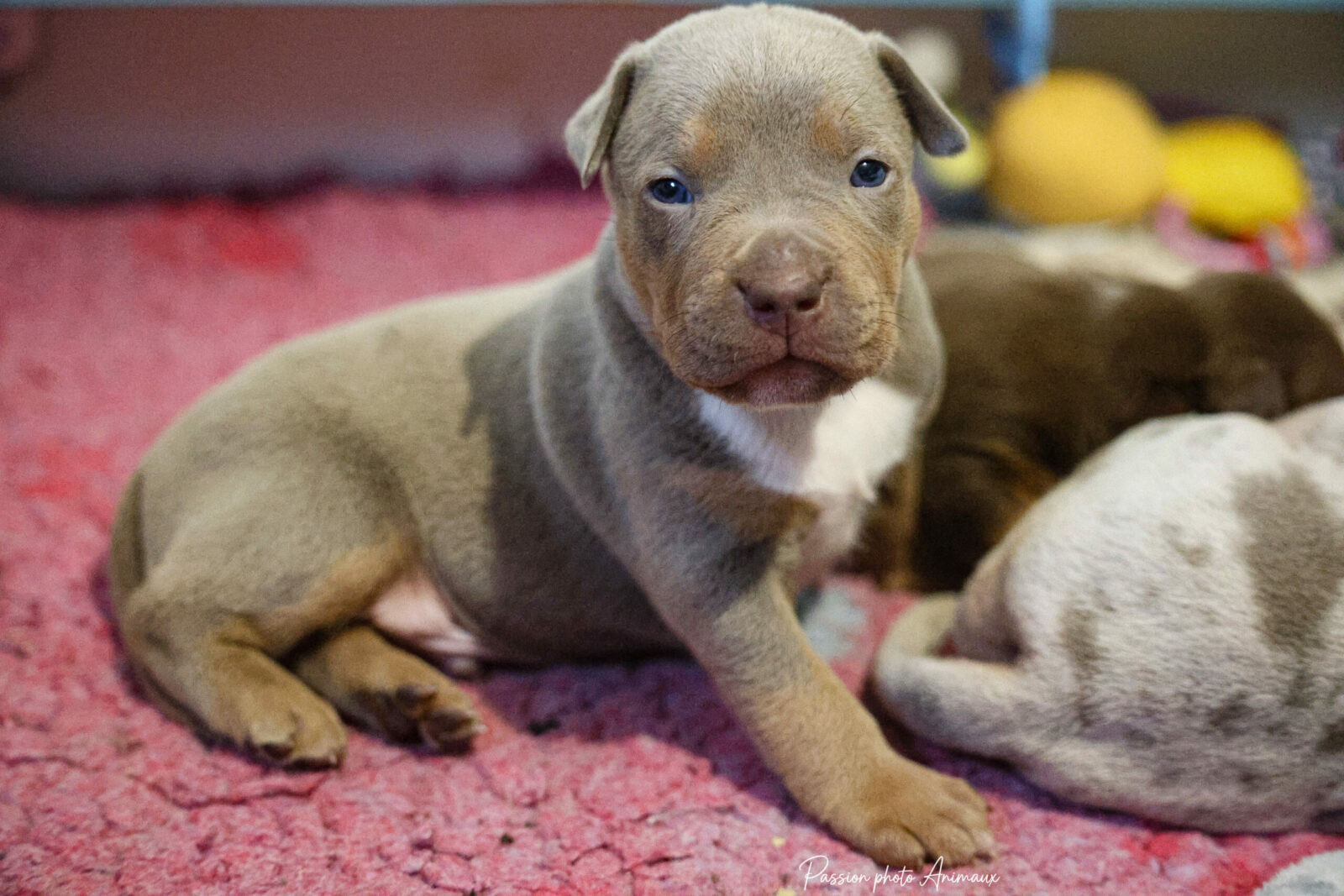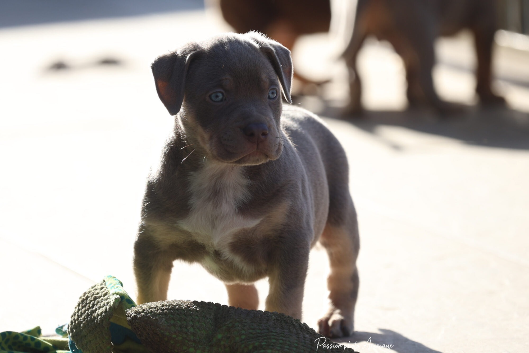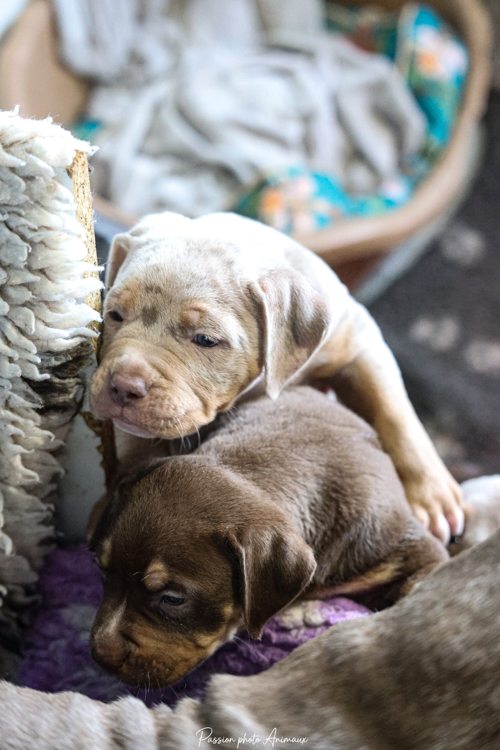 Retrouvez ici nos chiots American Bully XL prêts à rejoindre leur nouvelle famille. Tous nos petits sont issus de mariages rigoureux, sélectionnés pour leur morphologie et leur santé, et sont tous inscrits au pedigree ABKC Adopter l’un de nos chiots American Bully XL, c’est rejoindre la WOB Family avec un suivi éducation à vie.