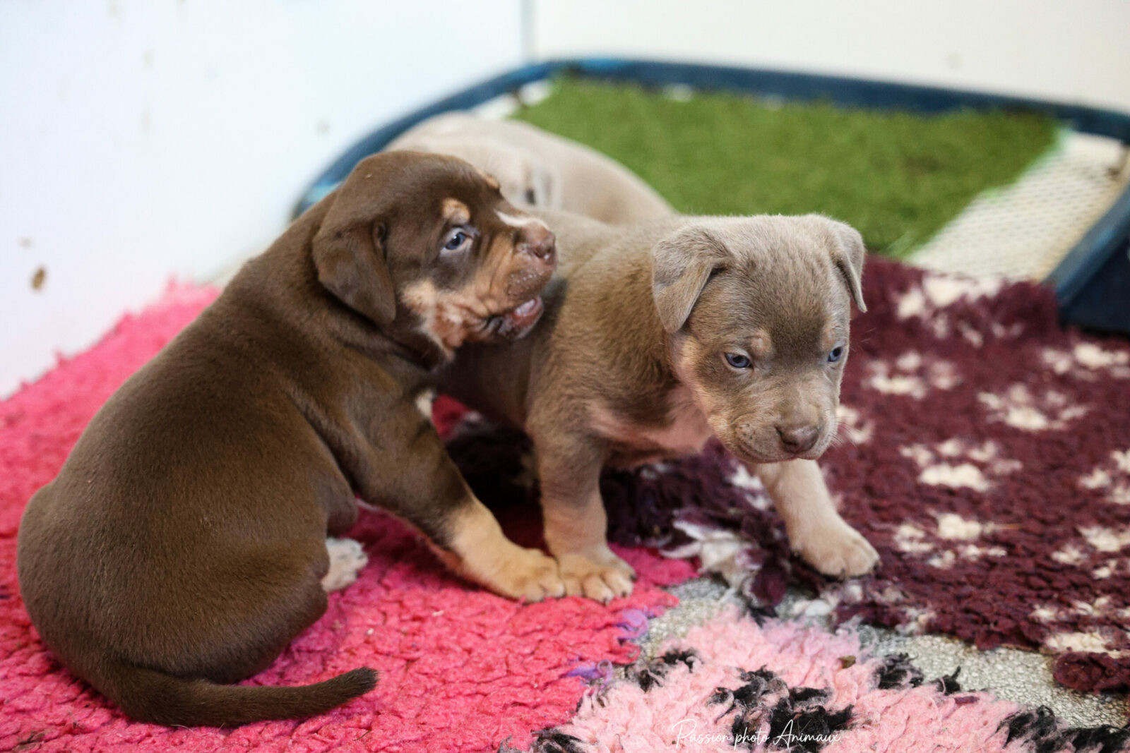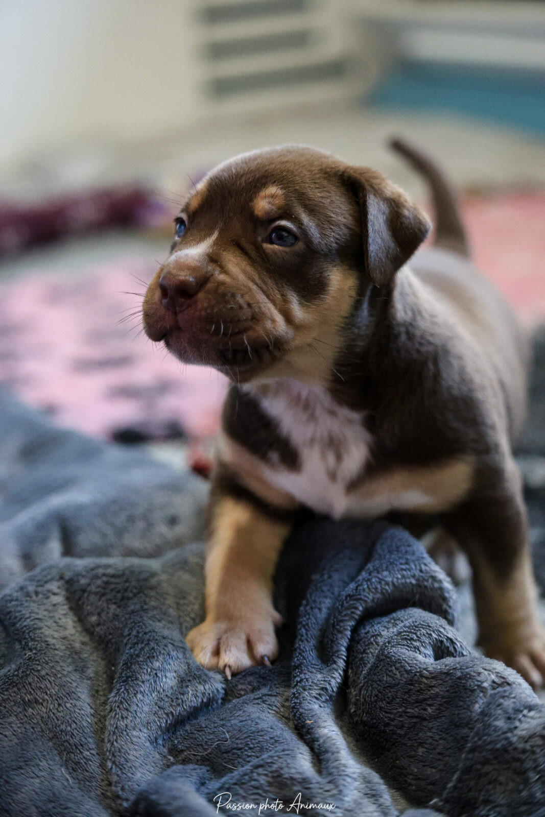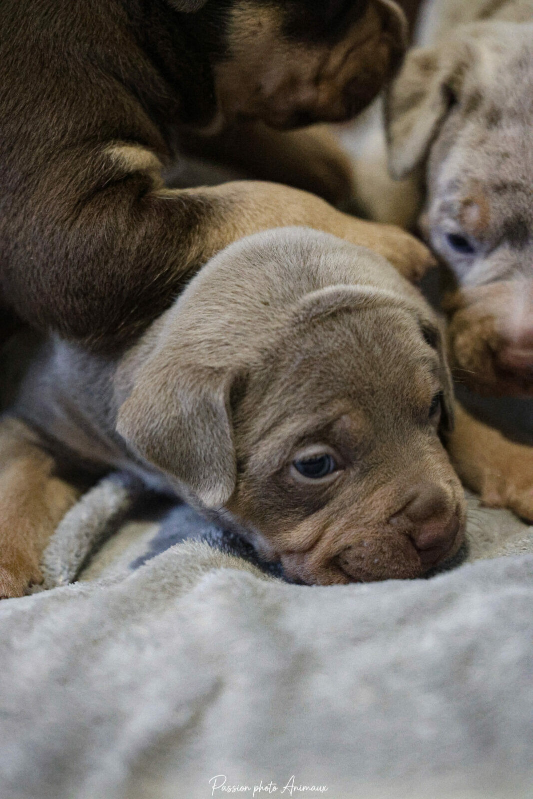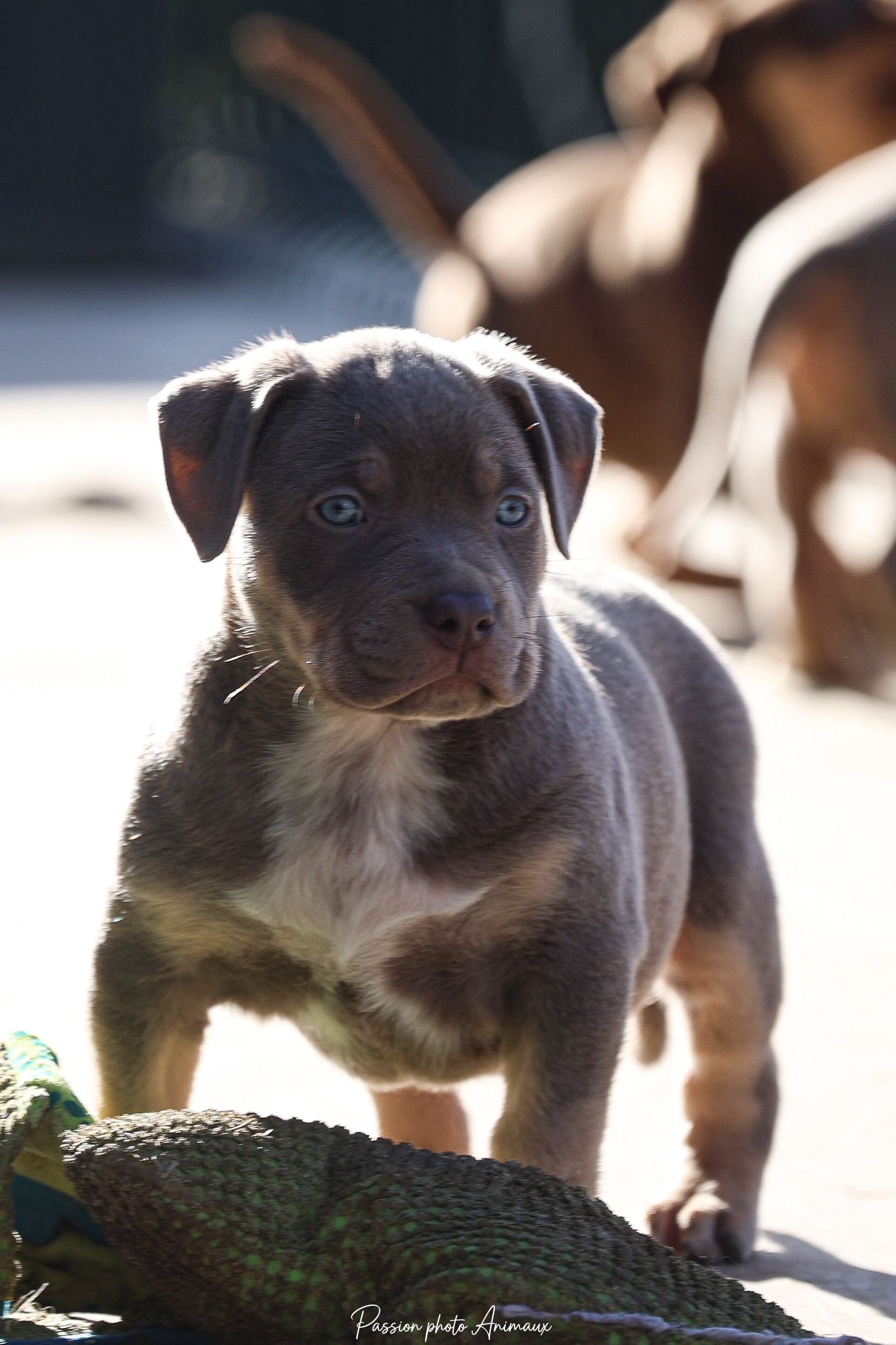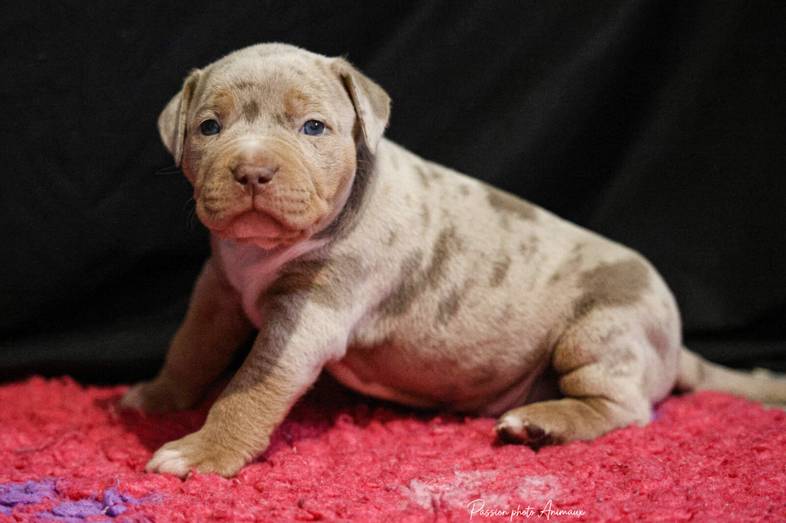 Retrouvez ici nos chiots American Bully XL prêts à rejoindre leur nouvelle famille. Tous nos petits sont issus de mariages rigoureux, sélectionnés pour leur morphologie et leur santé, et sont tous inscrits au pedigree ABKC Adopter l’un de nos chiots American Bully XL, c’est rejoindre la WOB Family avec un suivi éducation à vie.