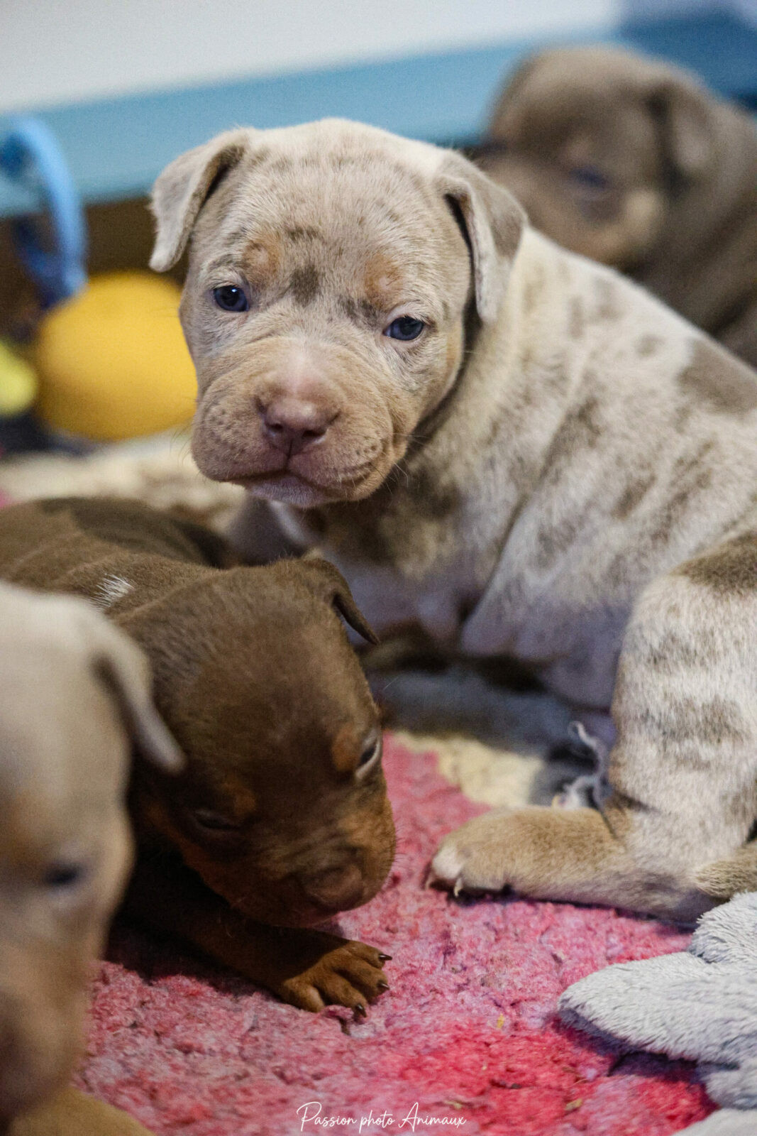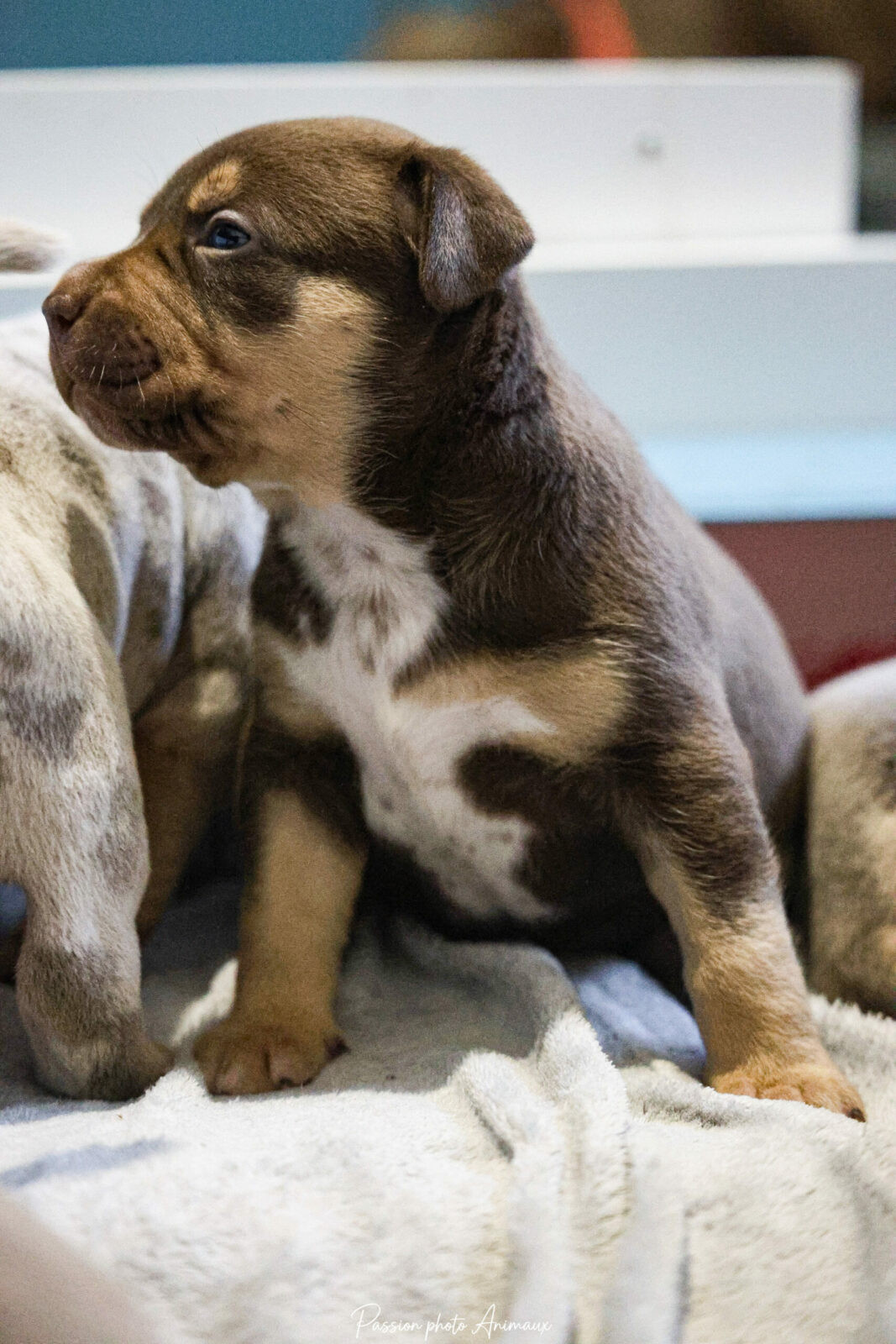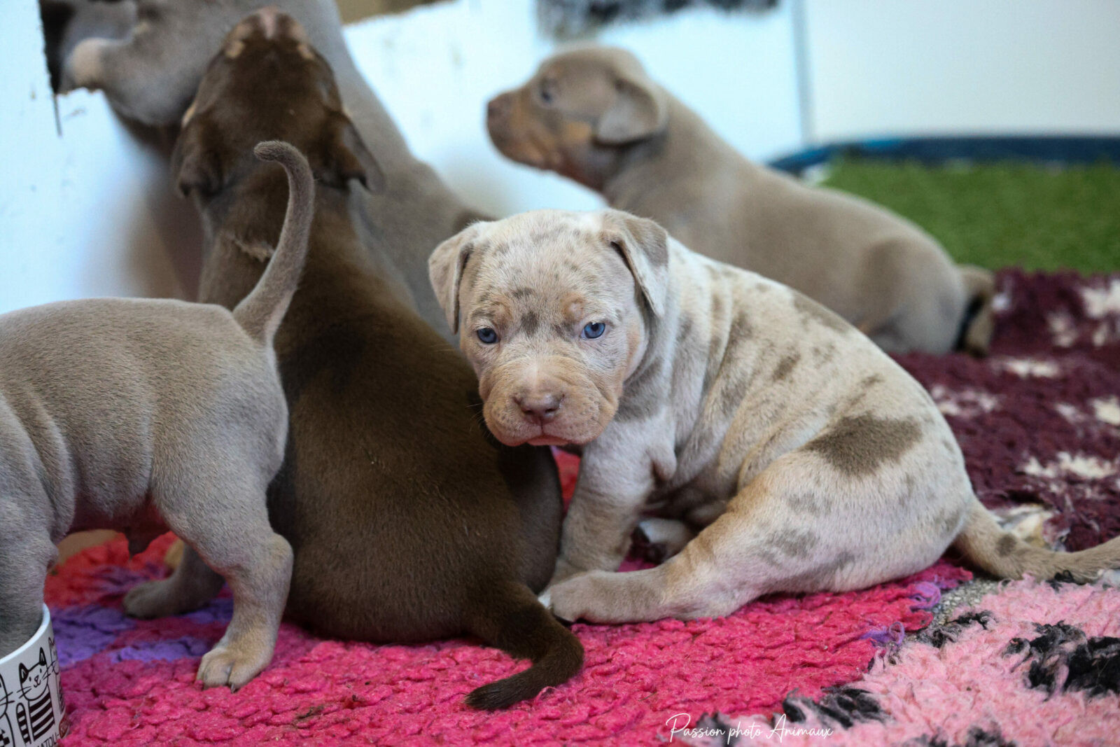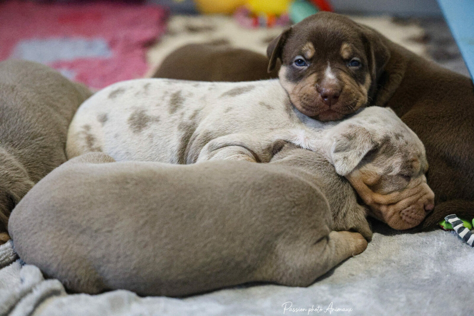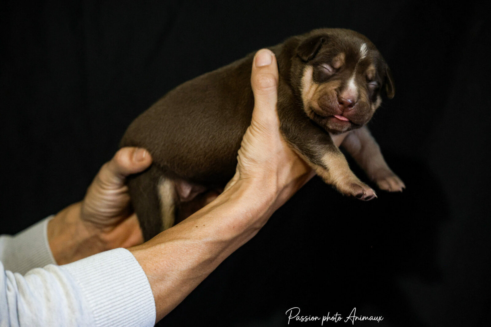 Retrouvez ici nos chiots American Bully XL prêts à rejoindre leur nouvelle famille. Tous nos petits sont issus de mariages rigoureux, sélectionnés pour leur morphologie et leur santé, et sont tous inscrits au pedigree ABKC Adopter l’un de nos chiots American Bully XL, c’est rejoindre la WOB Family avec un suivi éducation à vie.