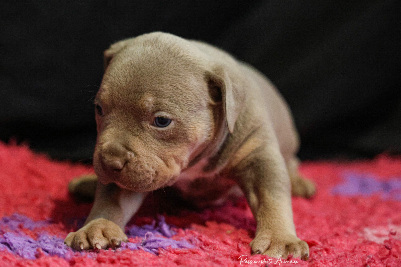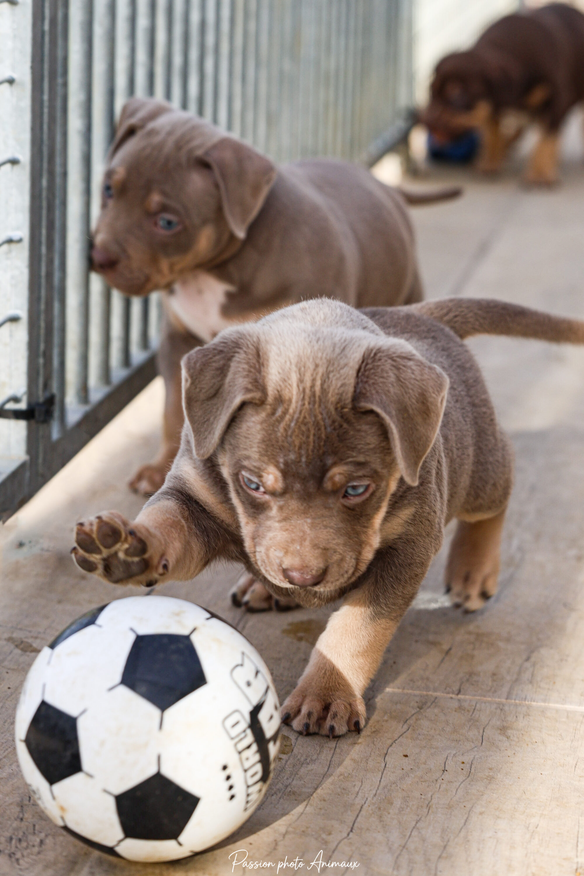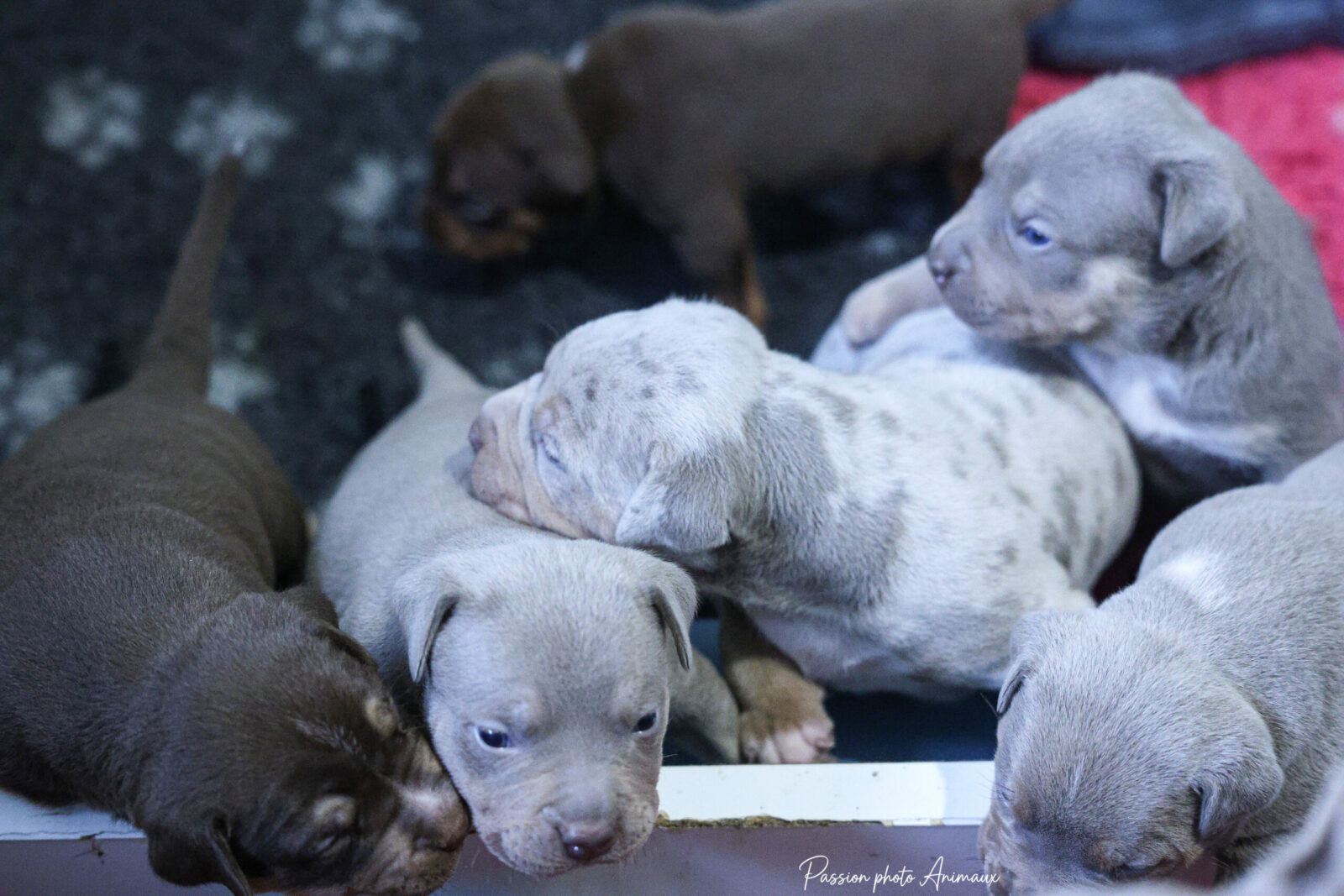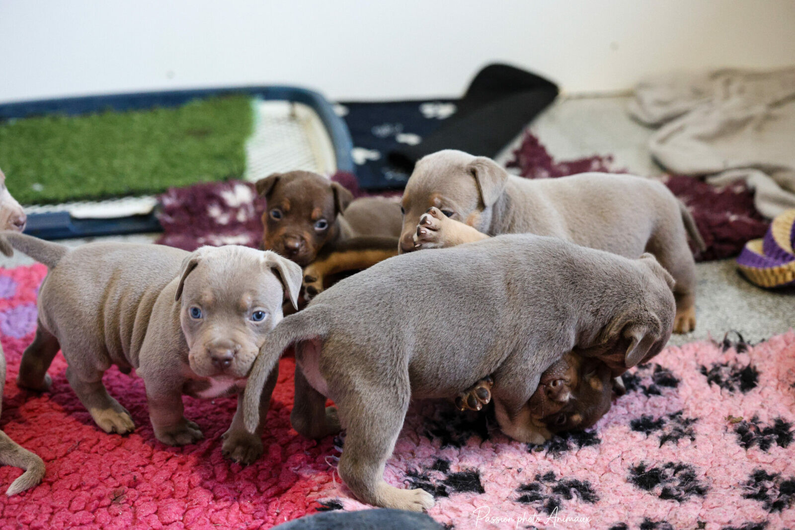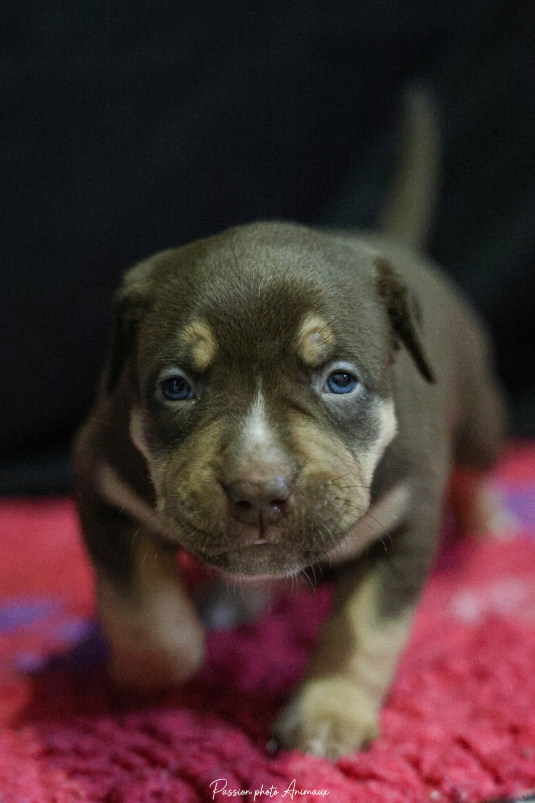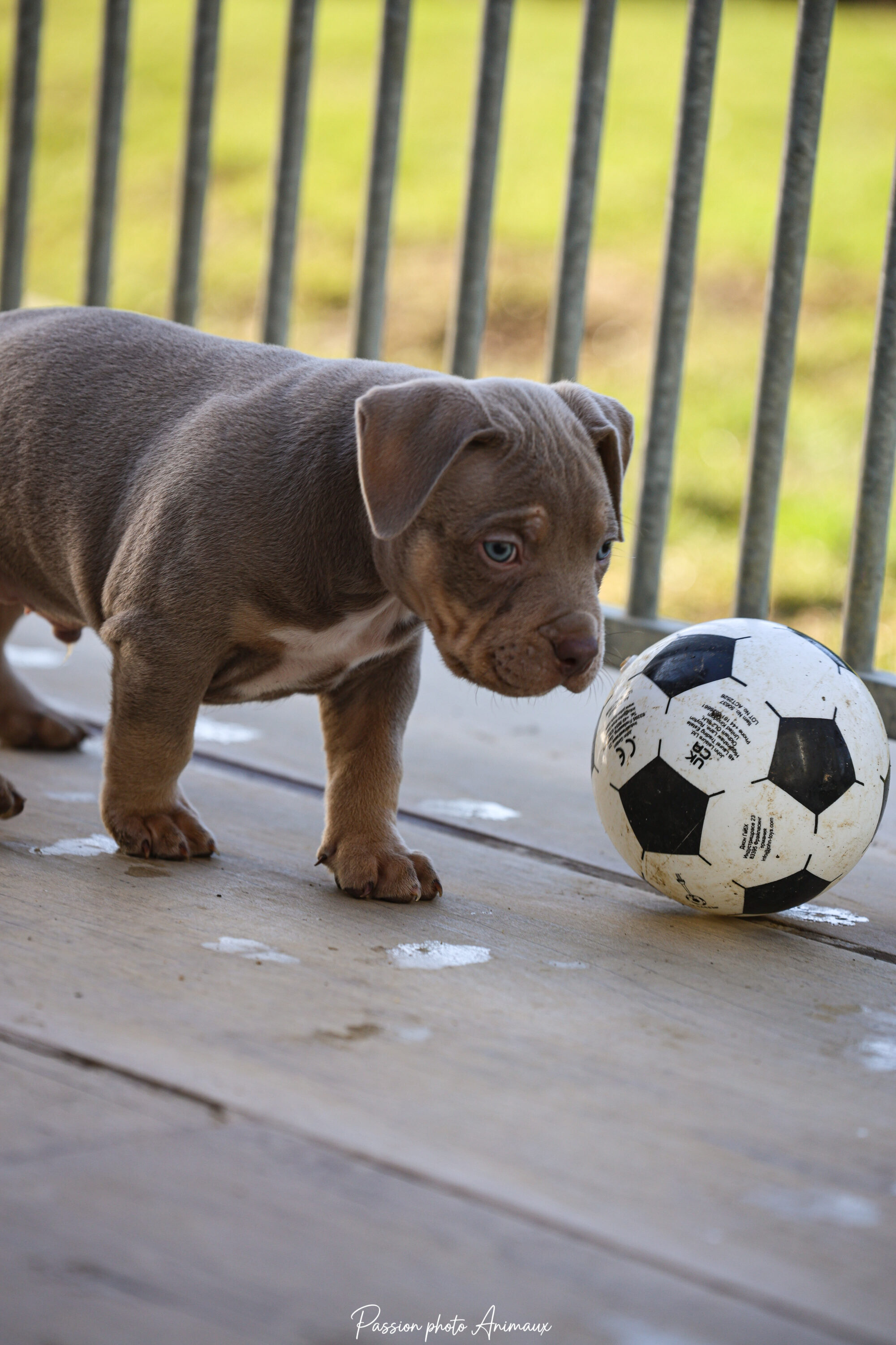 Retrouvez ici nos chiots American Bully XL prêts à rejoindre leur nouvelle famille. Tous nos petits sont issus de mariages rigoureux, sélectionnés pour leur morphologie et leur santé, et sont tous inscrits au pedigree ABKC Adopter l’un de nos chiots American Bully XL, c’est rejoindre la WOB Family avec un suivi éducation à vie.