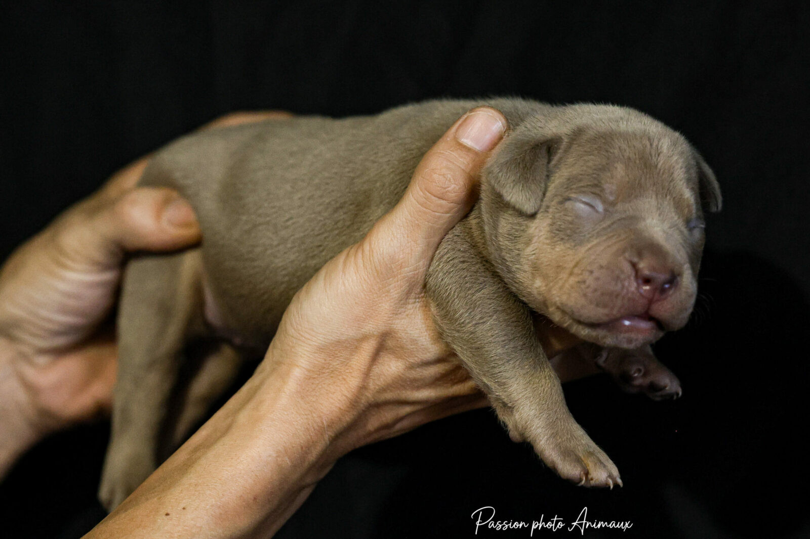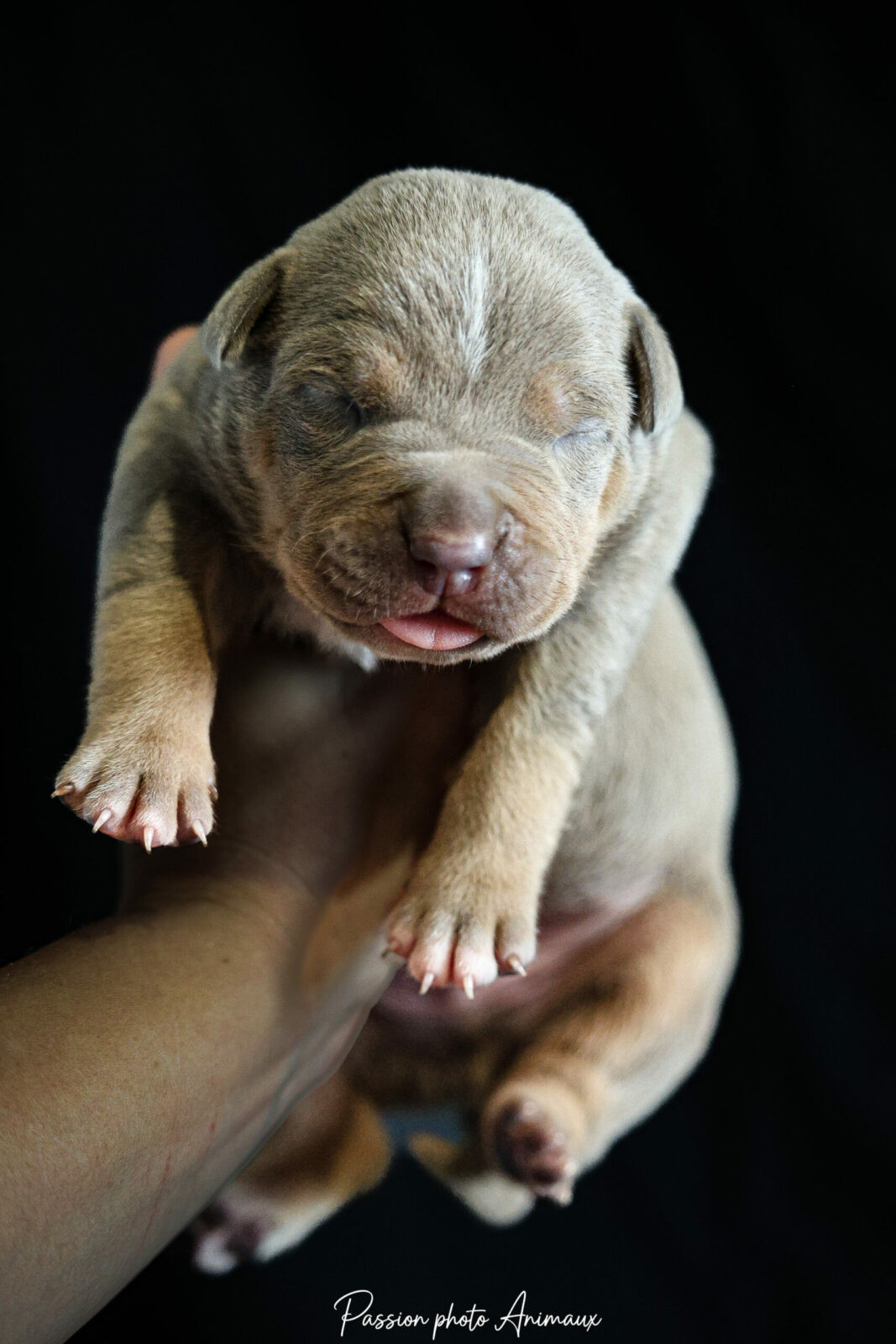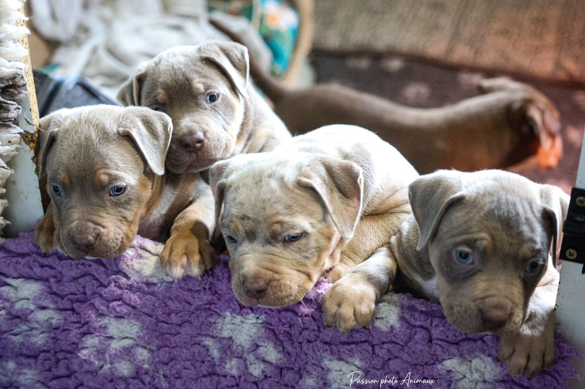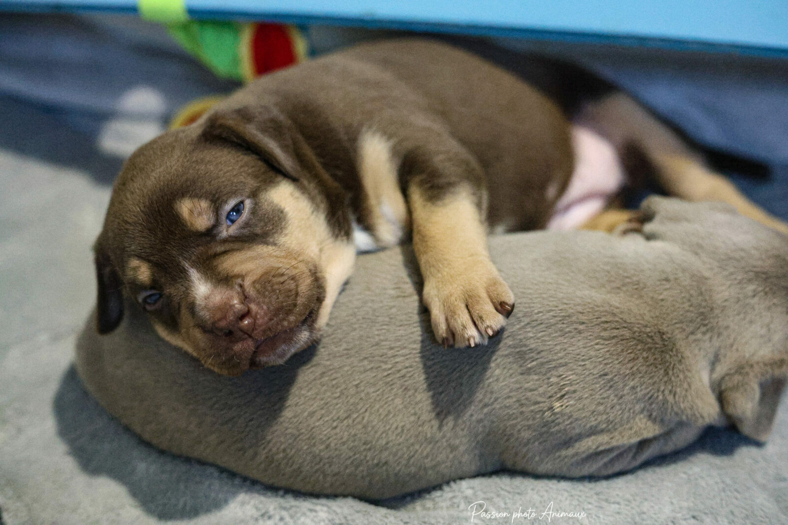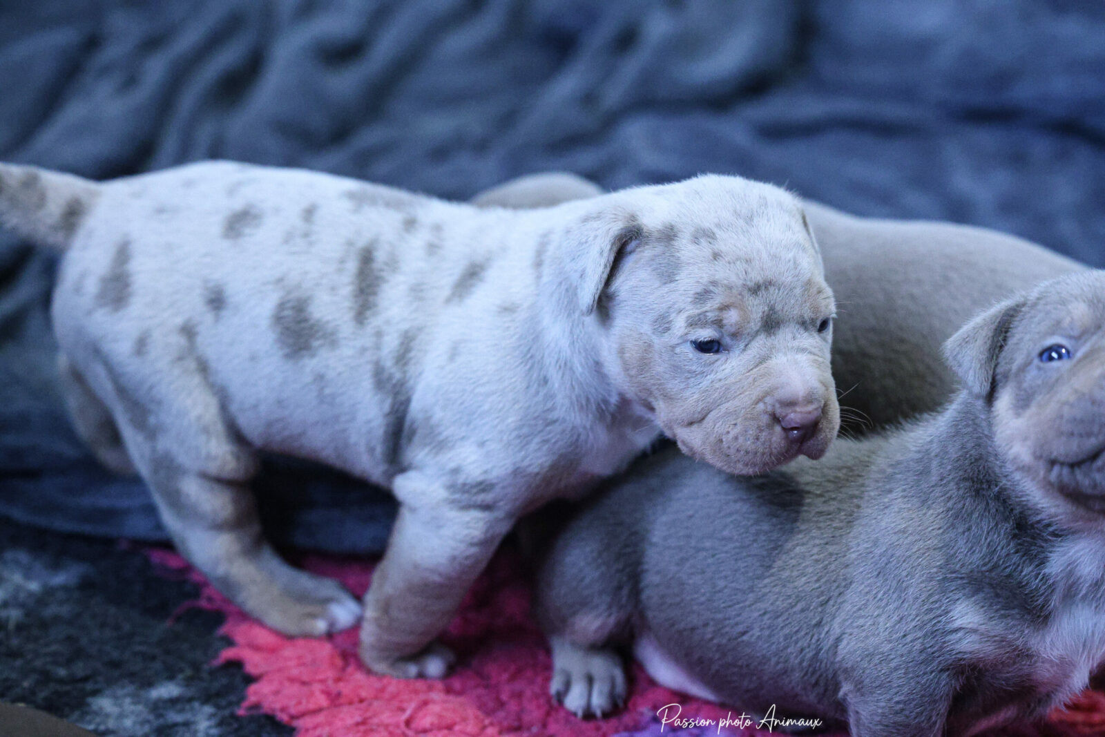 Retrouvez ici nos chiots American Bully XL prêts à rejoindre leur nouvelle famille. Tous nos petits sont issus de mariages rigoureux, sélectionnés pour leur morphologie et leur santé, et sont tous inscrits au pedigree ABKC Adopter l’un de nos chiots American Bully XL, c’est rejoindre la WOB Family avec un suivi éducation à vie.