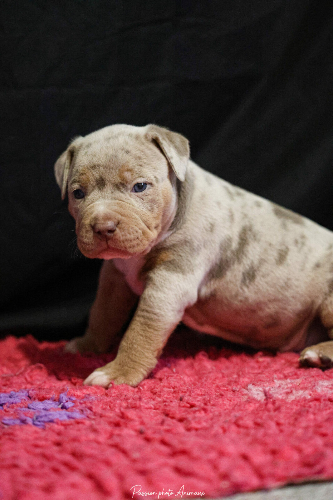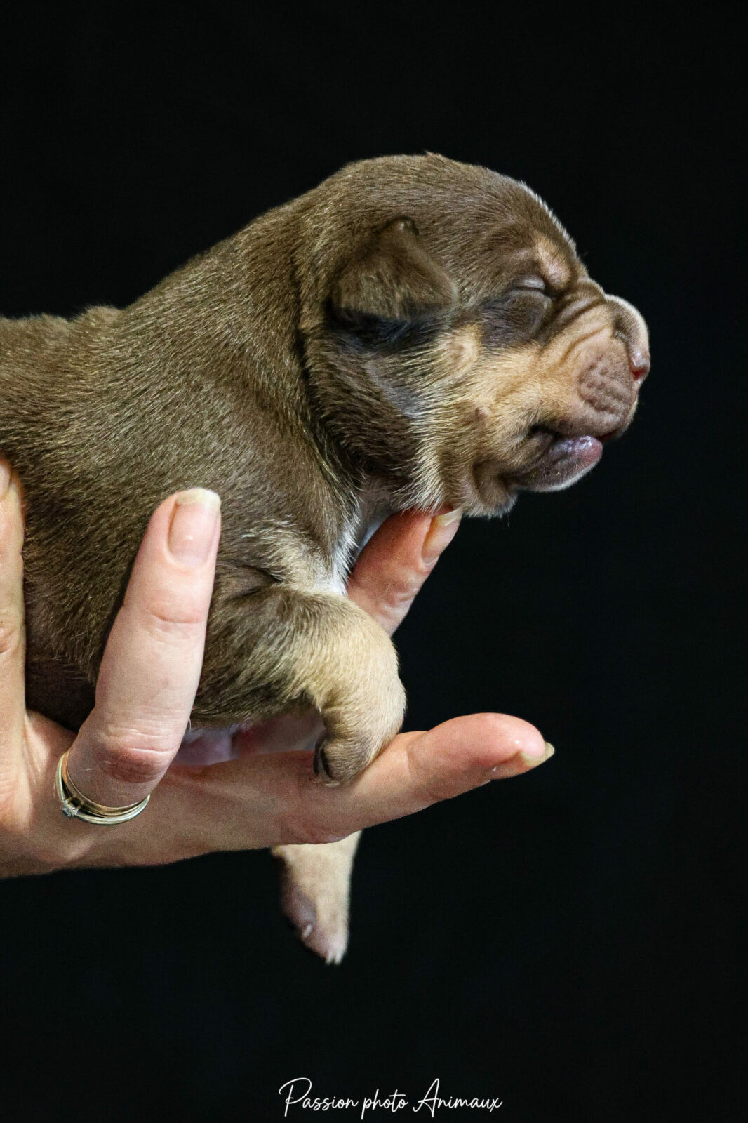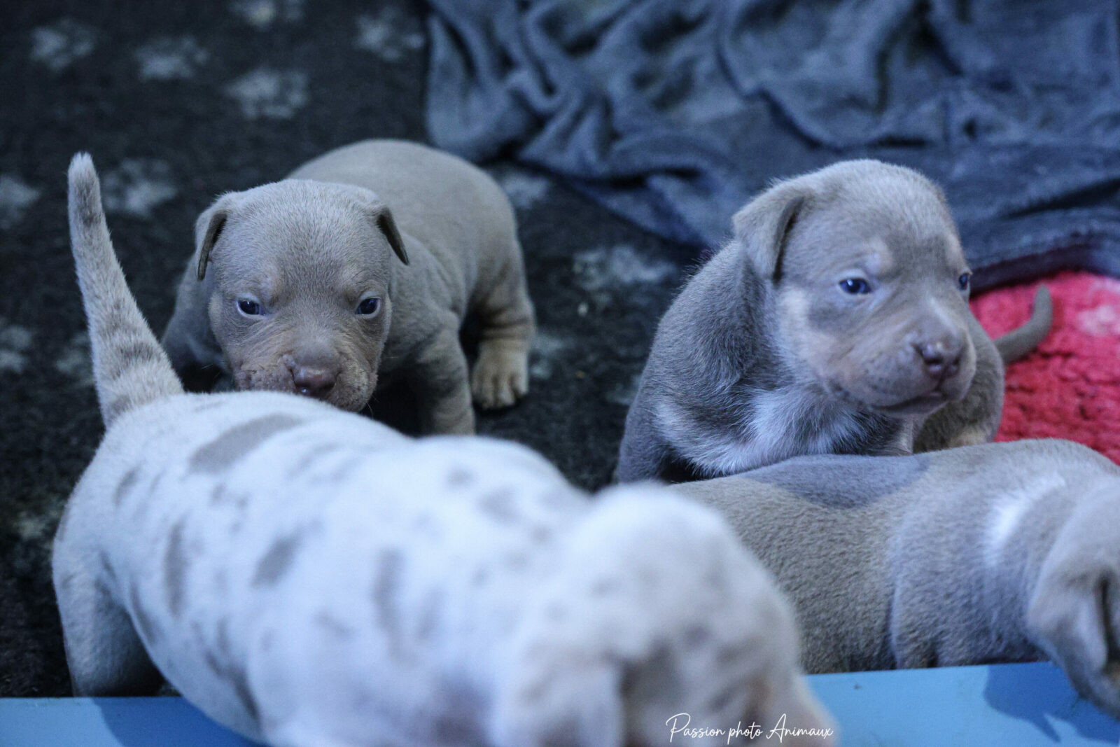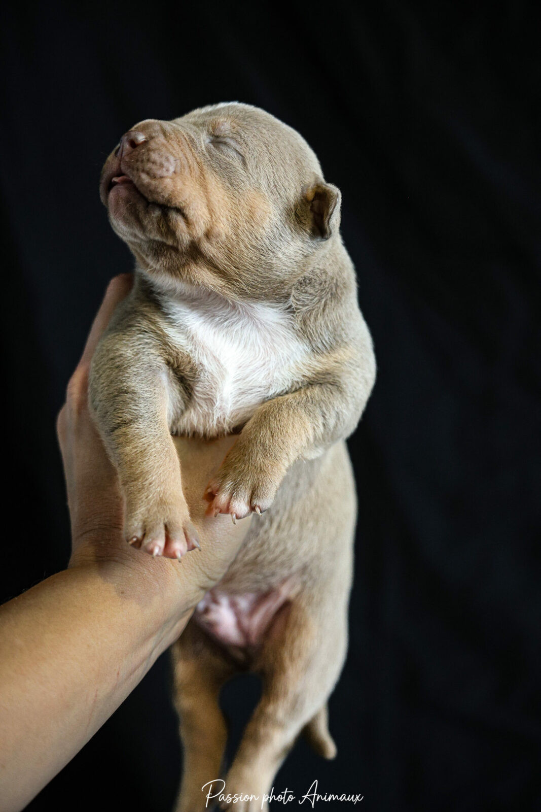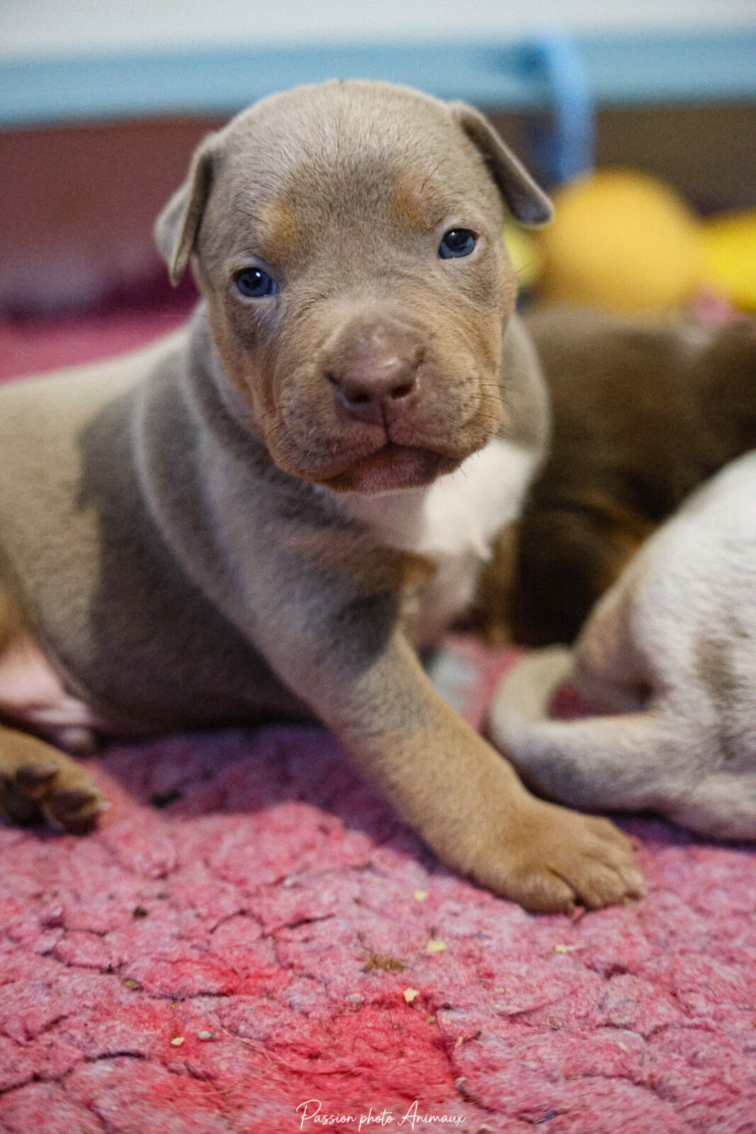 Retrouvez ici nos chiots American Bully XL prêts à rejoindre leur nouvelle famille. Tous nos petits sont issus de mariages rigoureux, sélectionnés pour leur morphologie et leur santé, et sont tous inscrits au pedigree ABKC Adopter l’un de nos chiots American Bully XL, c’est rejoindre la WOB Family avec un suivi éducation à vie.