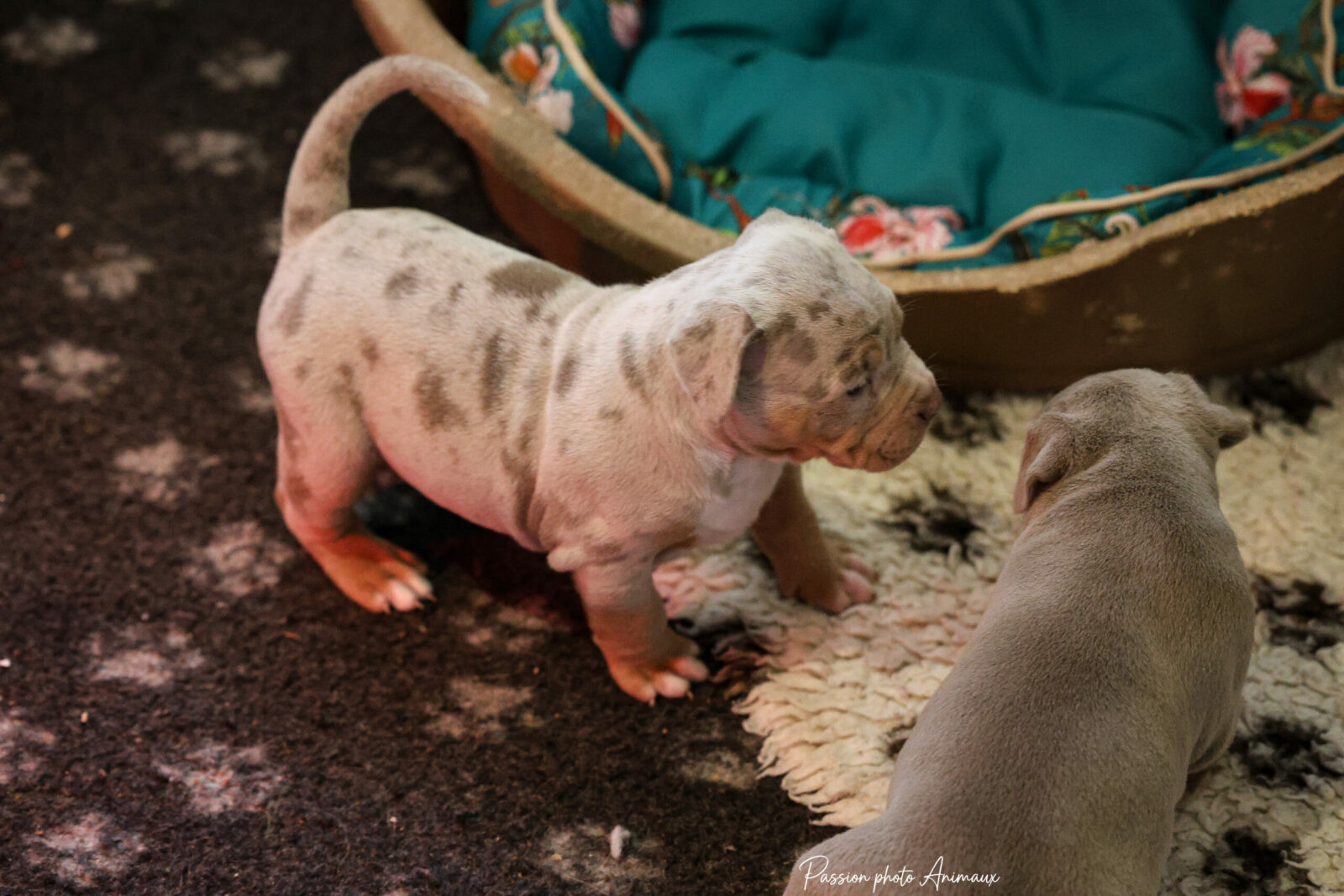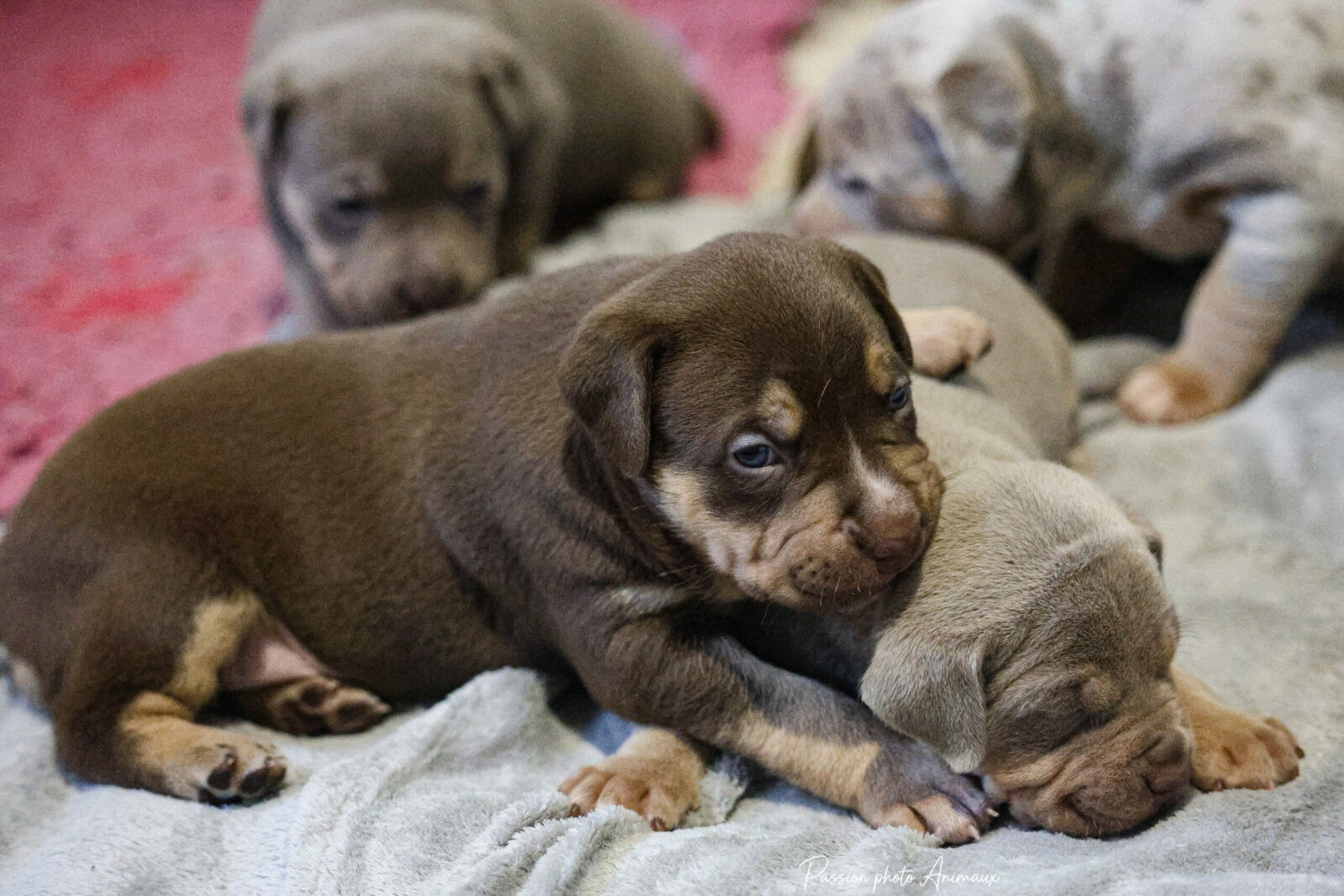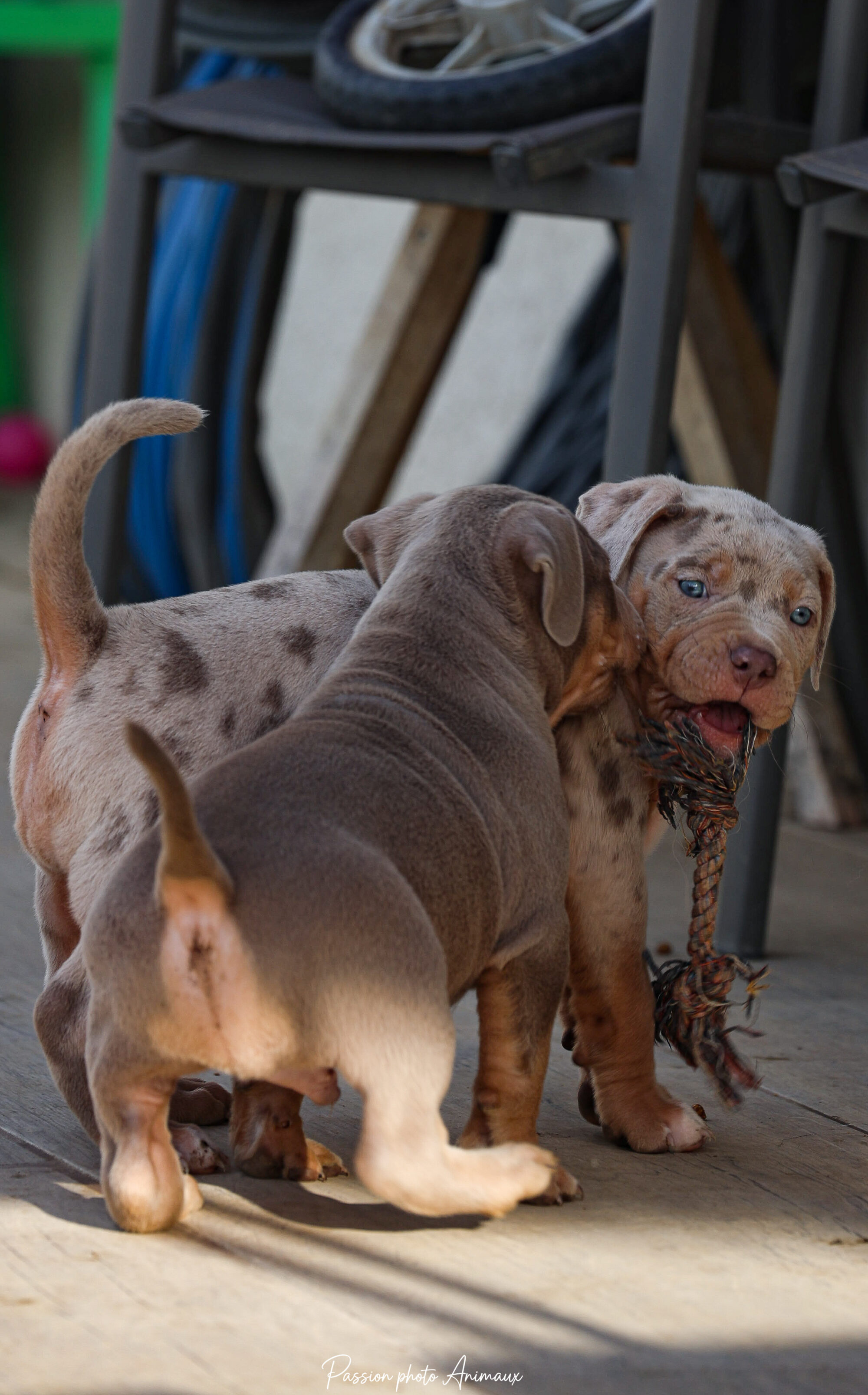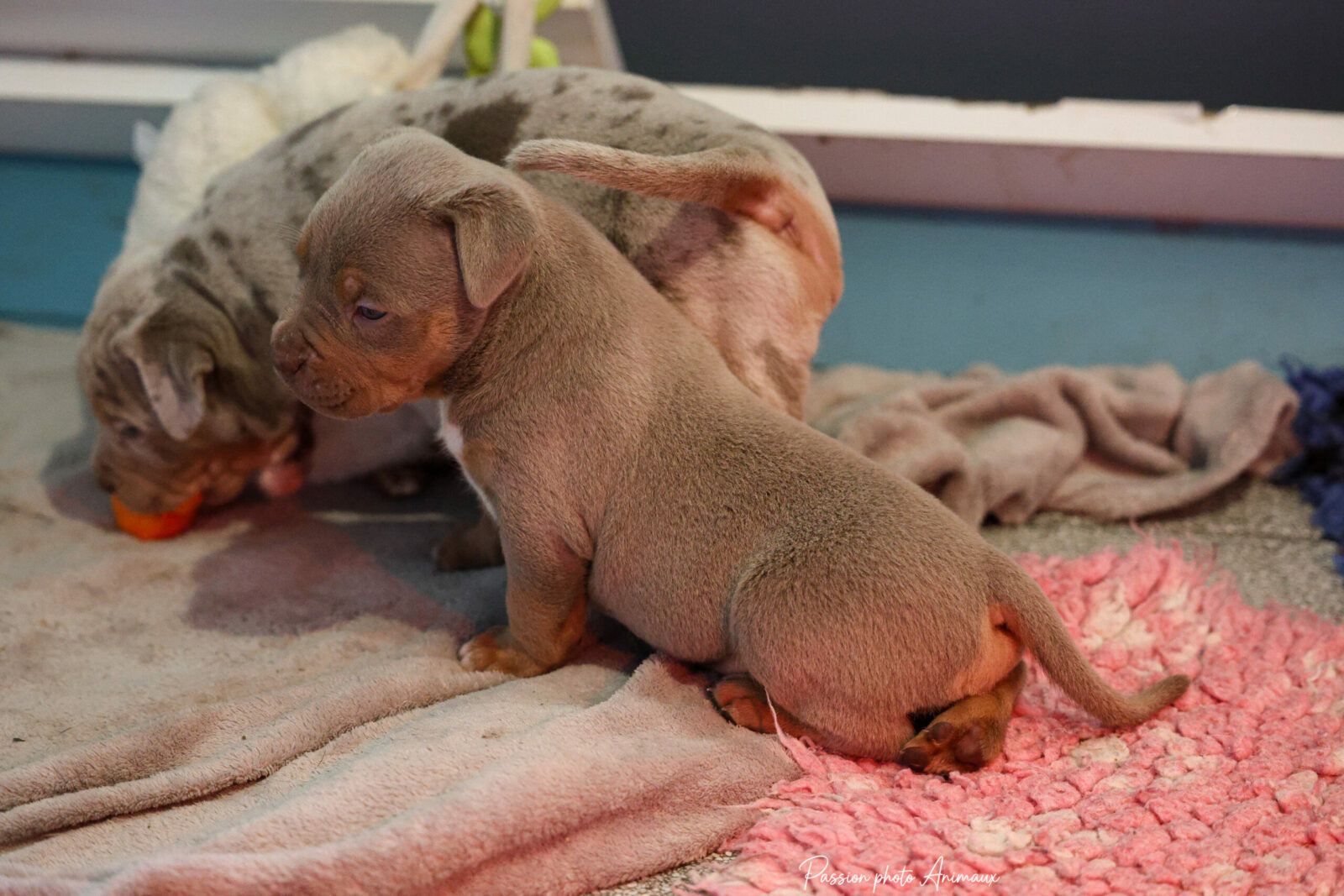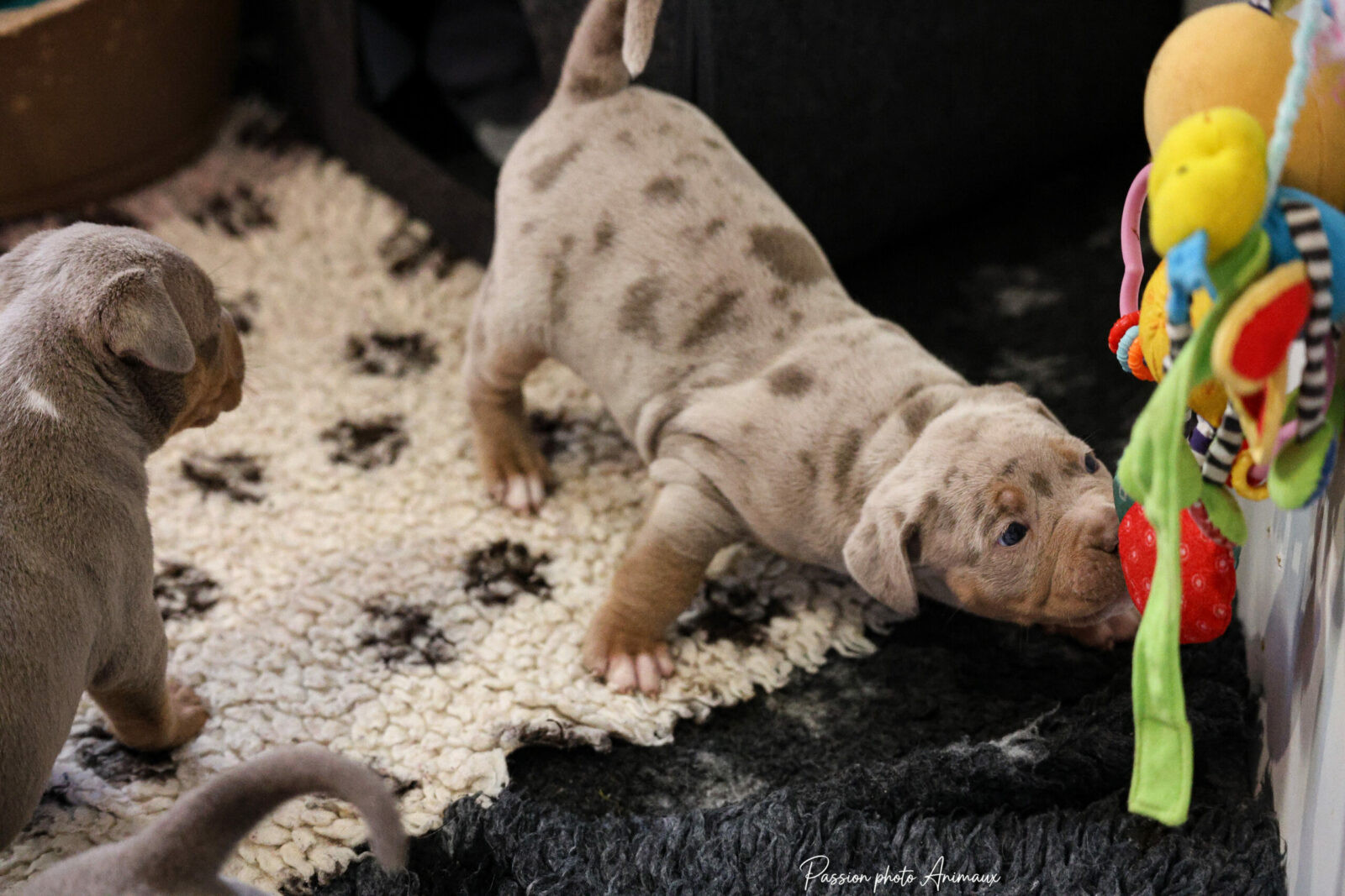 Retrouvez ici nos chiots American Bully XL prêts à rejoindre leur nouvelle famille. Tous nos petits sont issus de mariages rigoureux, sélectionnés pour leur morphologie et leur santé, et sont tous inscrits au pedigree ABKC Adopter l’un de nos chiots American Bully XL, c’est rejoindre la WOB Family avec un suivi éducation à vie.