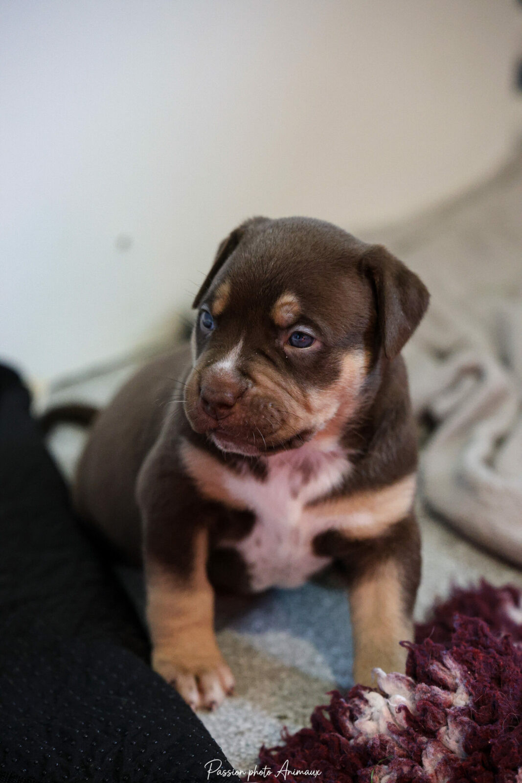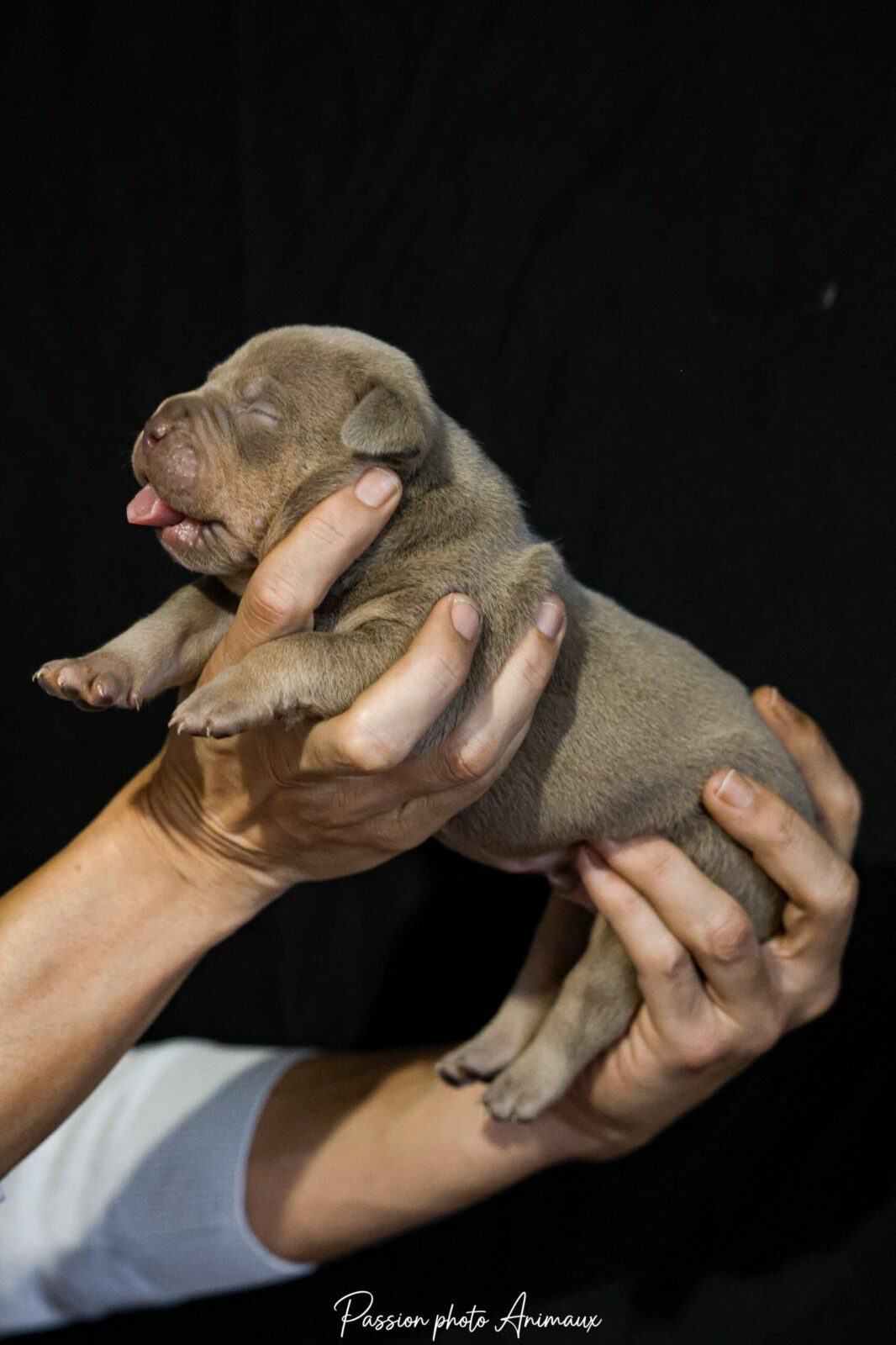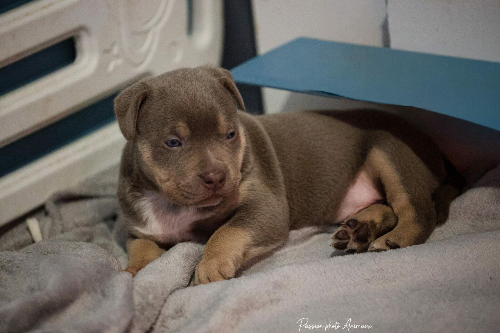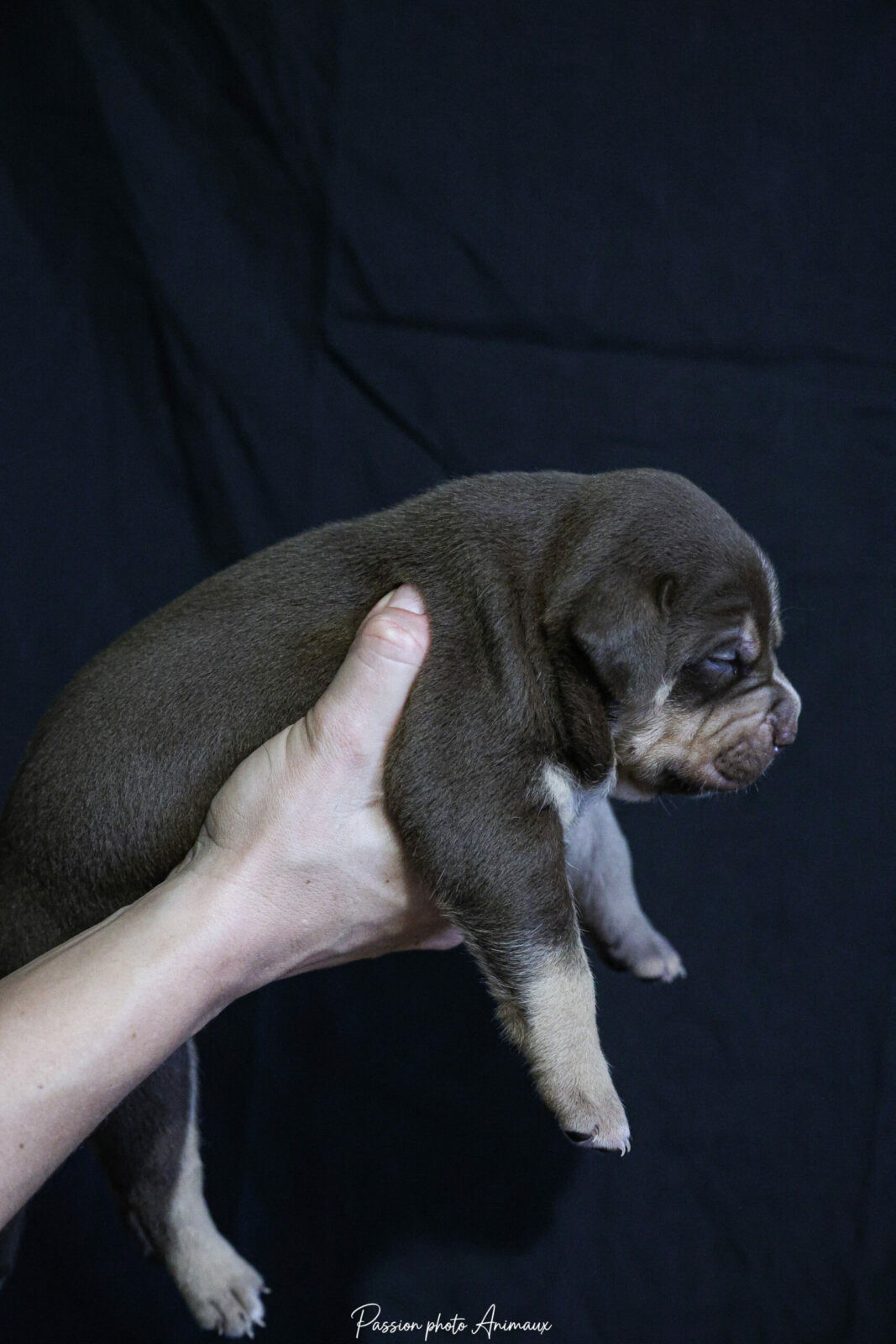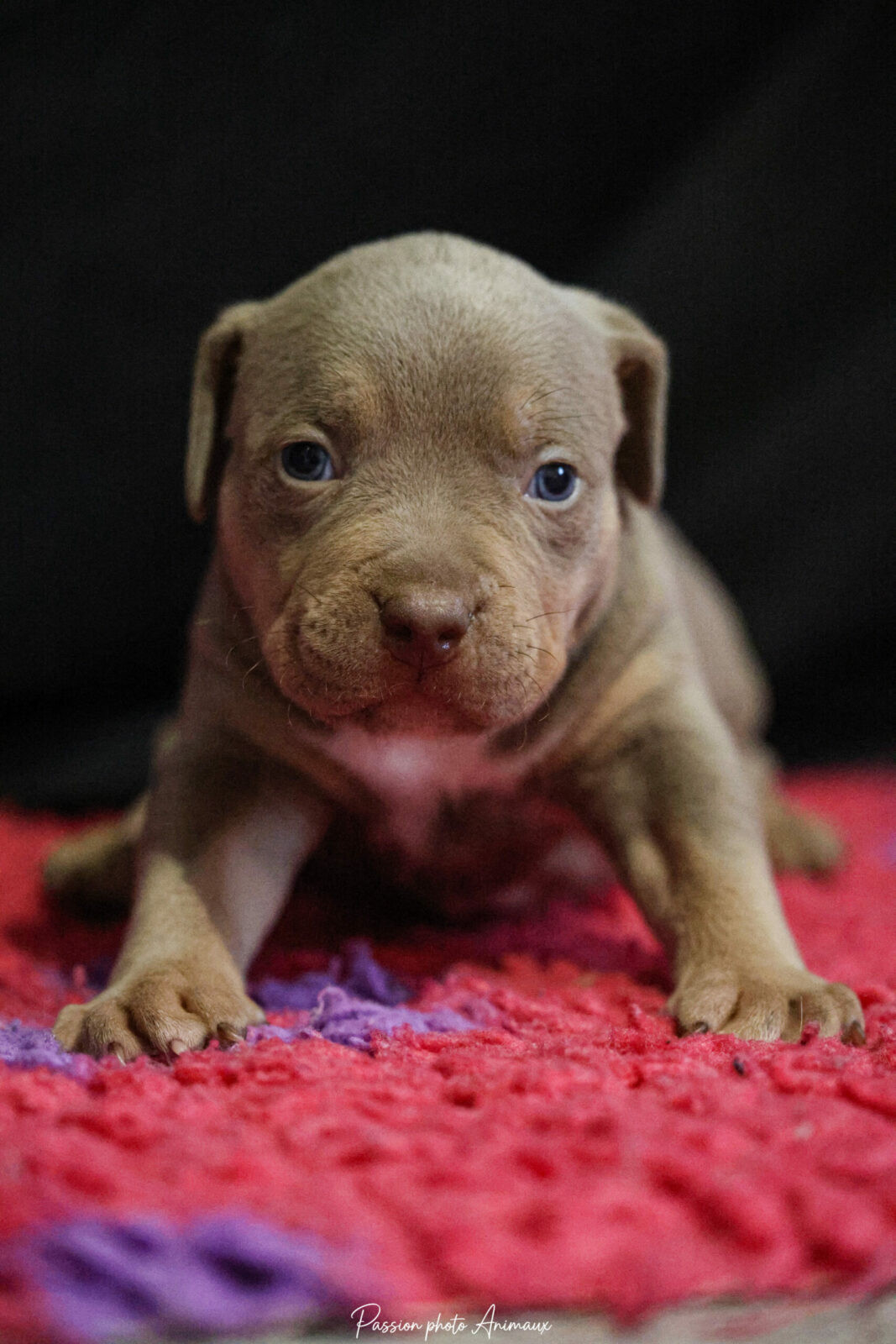 Retrouvez ici nos chiots American Bully XL prêts à rejoindre leur nouvelle famille. Tous nos petits sont issus de mariages rigoureux, sélectionnés pour leur morphologie et leur santé, et sont tous inscrits au pedigree ABKC Adopter l’un de nos chiots American Bully XL, c’est rejoindre la WOB Family avec un suivi éducation à vie.