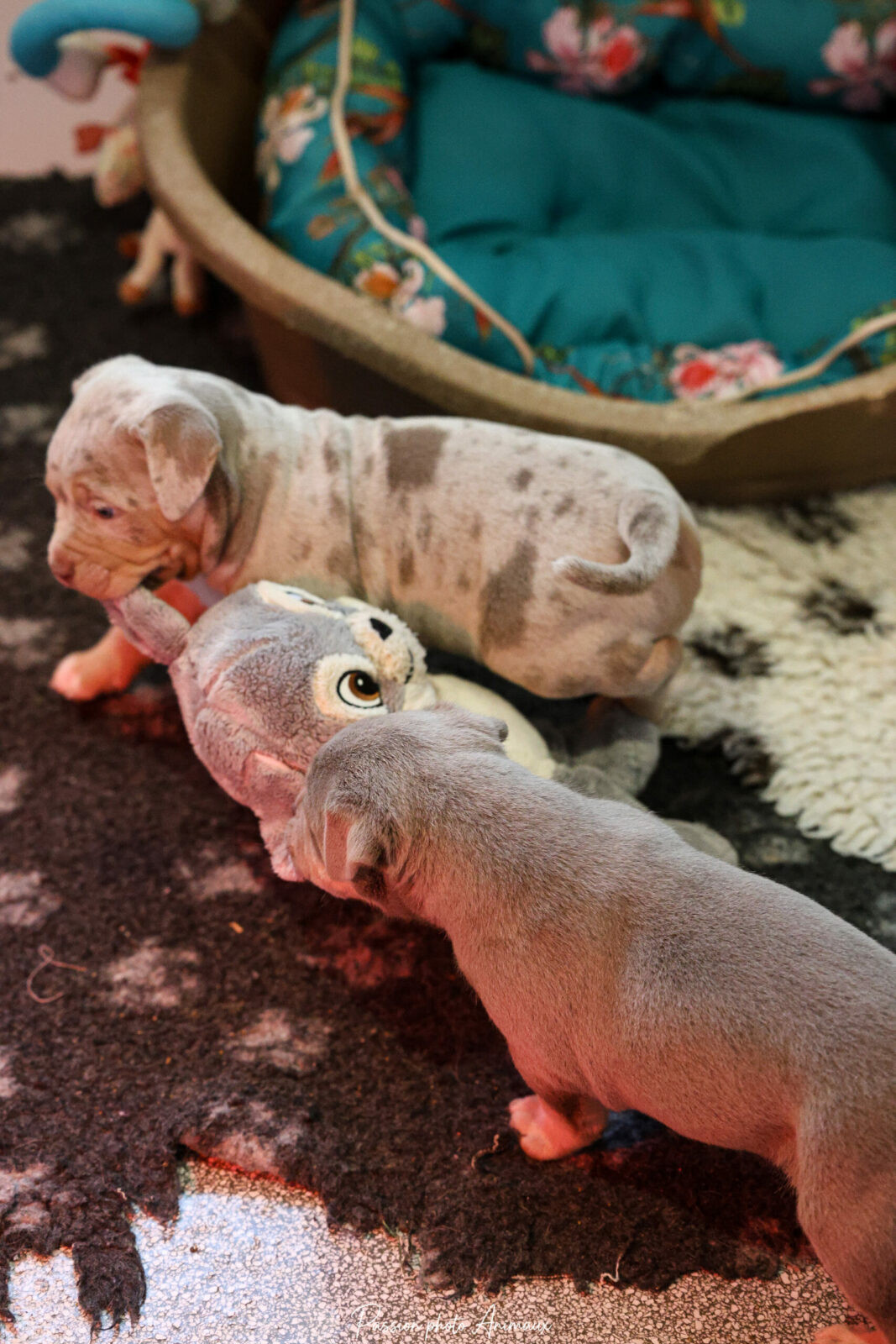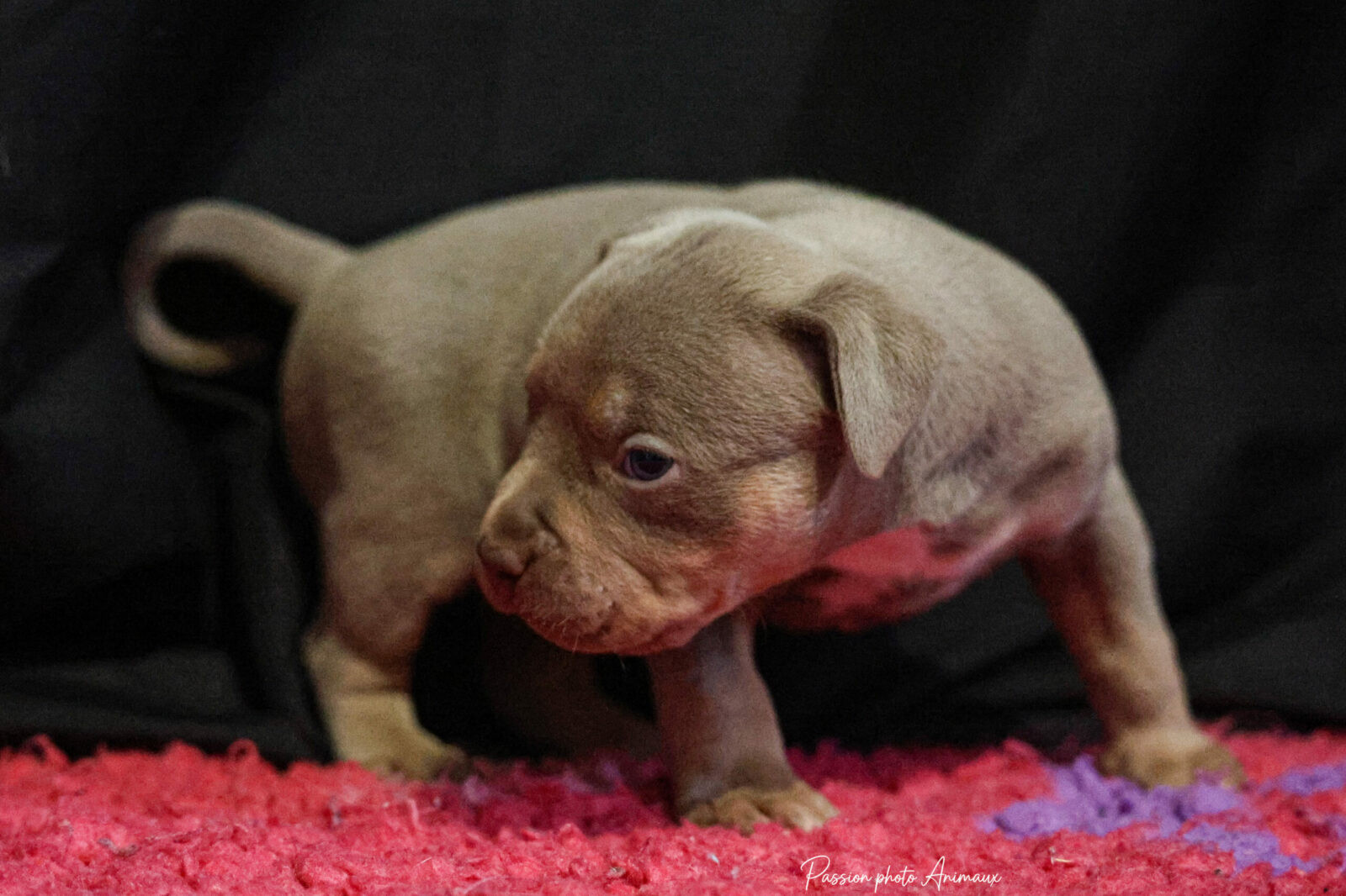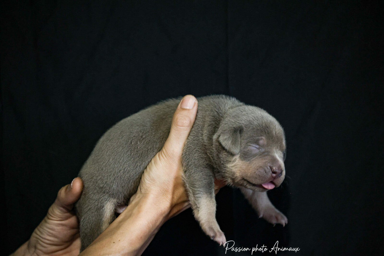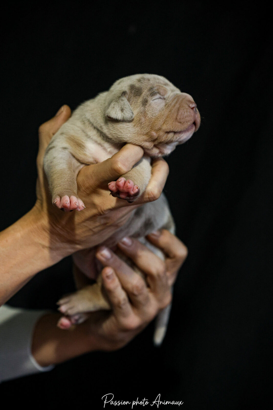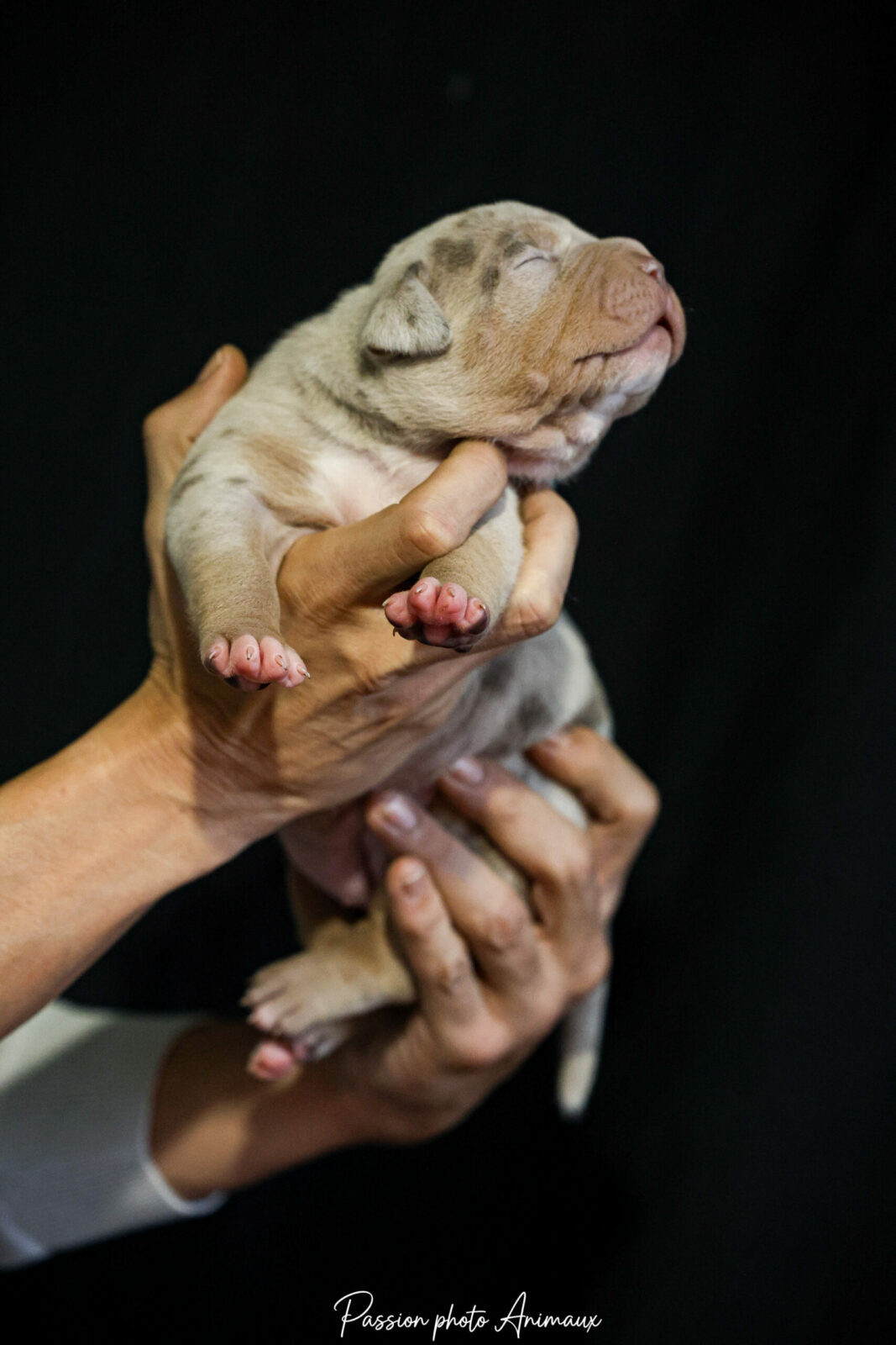 Retrouvez ici nos chiots American Bully XL prêts à rejoindre leur nouvelle famille. Tous nos petits sont issus de mariages rigoureux, sélectionnés pour leur morphologie et leur santé, et sont tous inscrits au pedigree ABKC Adopter l’un de nos chiots American Bully XL, c’est rejoindre la WOB Family avec un suivi éducation à vie.