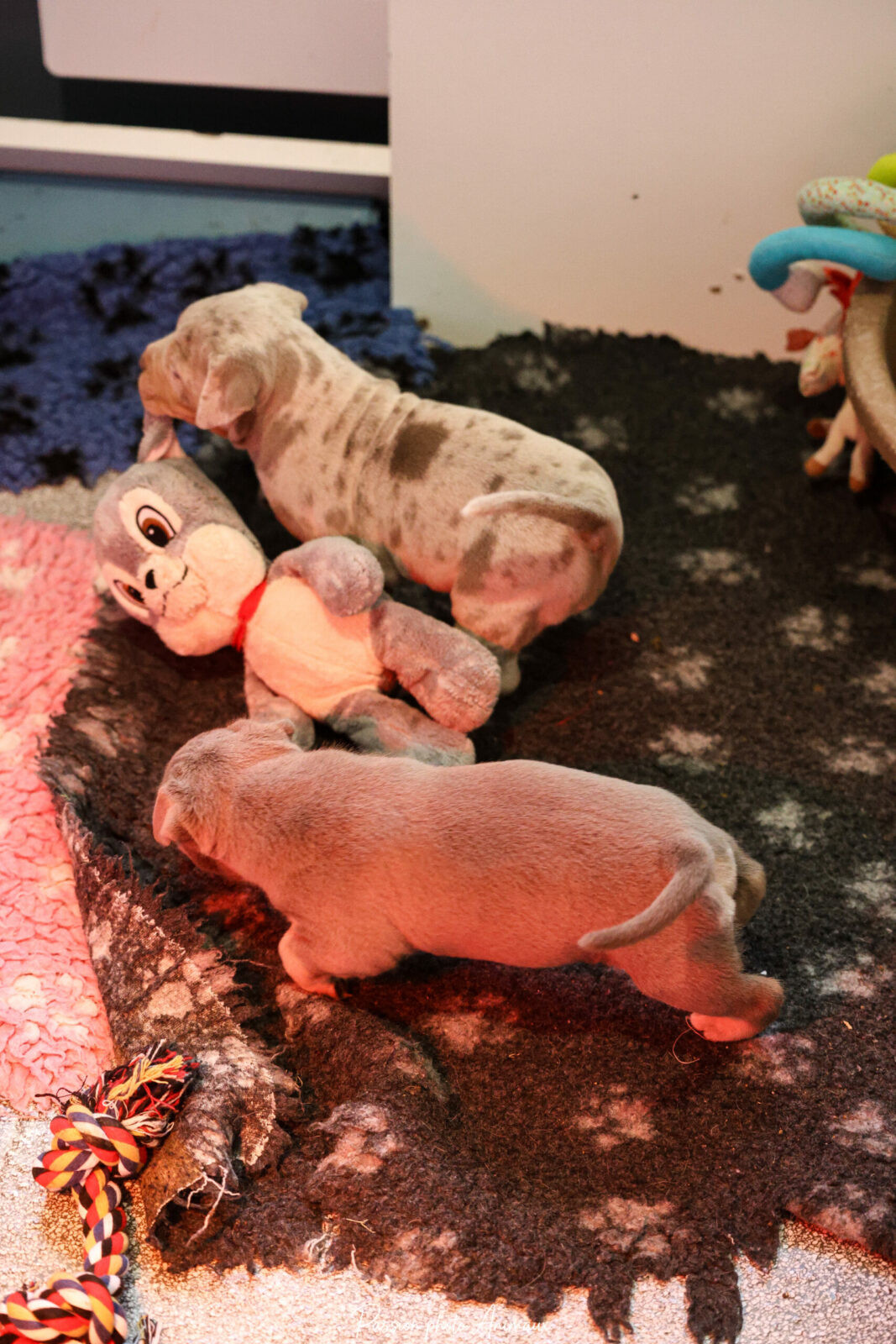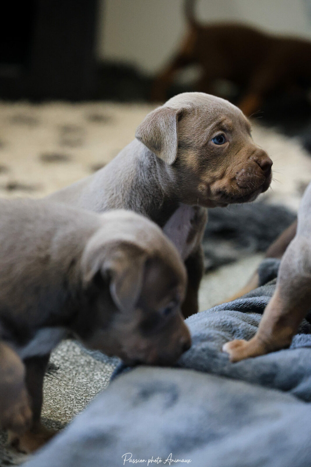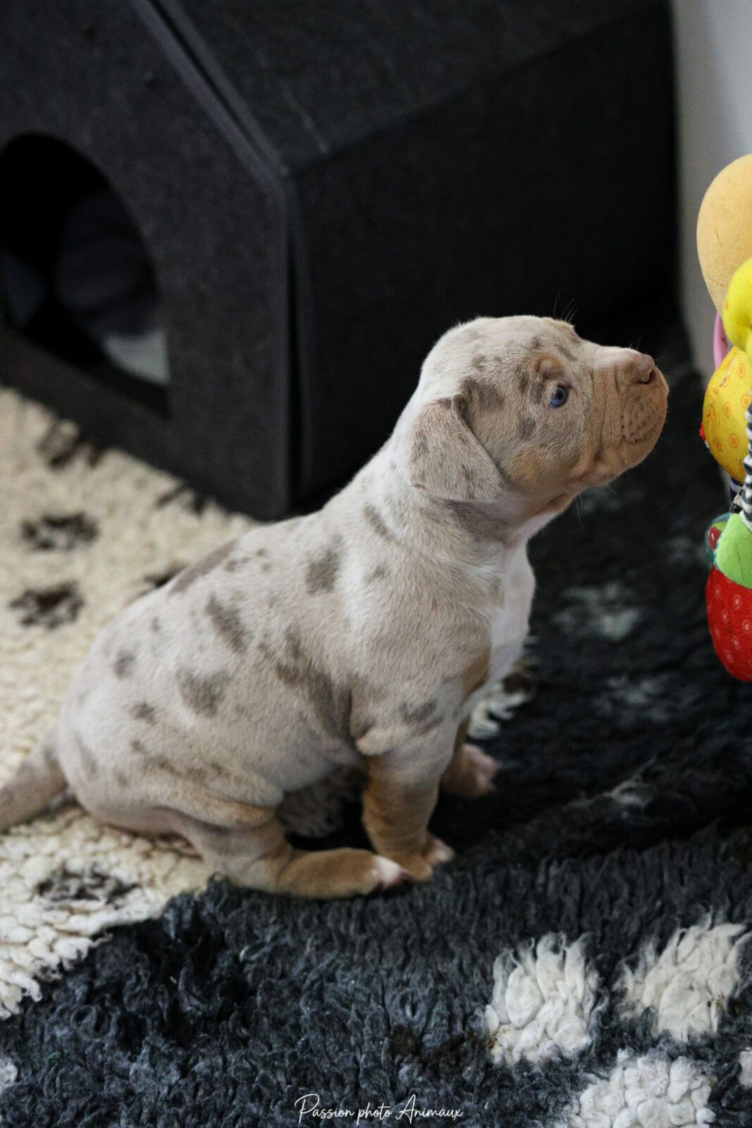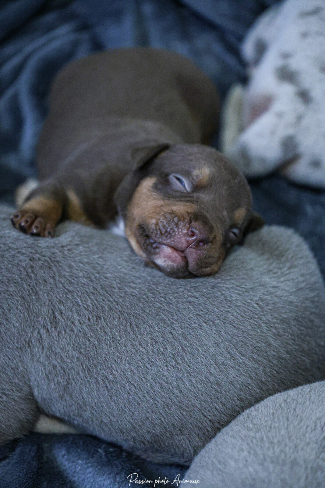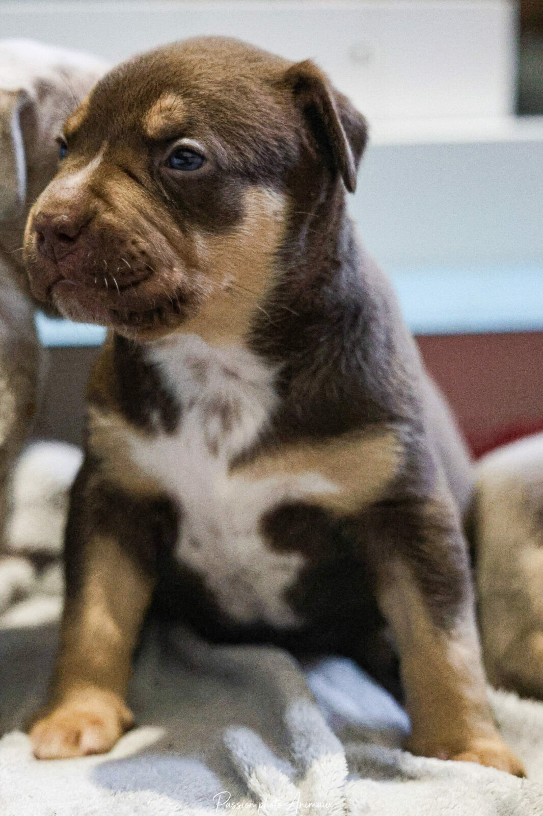 Retrouvez ici nos chiots American Bully XL prêts à rejoindre leur nouvelle famille. Tous nos petits sont issus de mariages rigoureux, sélectionnés pour leur morphologie et leur santé, et sont tous inscrits au pedigree ABKC Adopter l’un de nos chiots American Bully XL, c’est rejoindre la WOB Family avec un suivi éducation à vie.