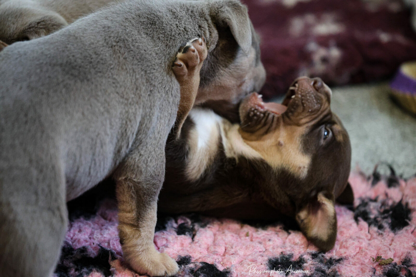 Chez World of Bully, notre élevage d’American Bully, la santé de nos chiots est primordiale. Dès l’âge de deux mois, ils reçoivent leur première vaccination et un certificat de bonne santé de notre vétérinaire. De plus, ils sont vermifugés dès leur quinzième jour.