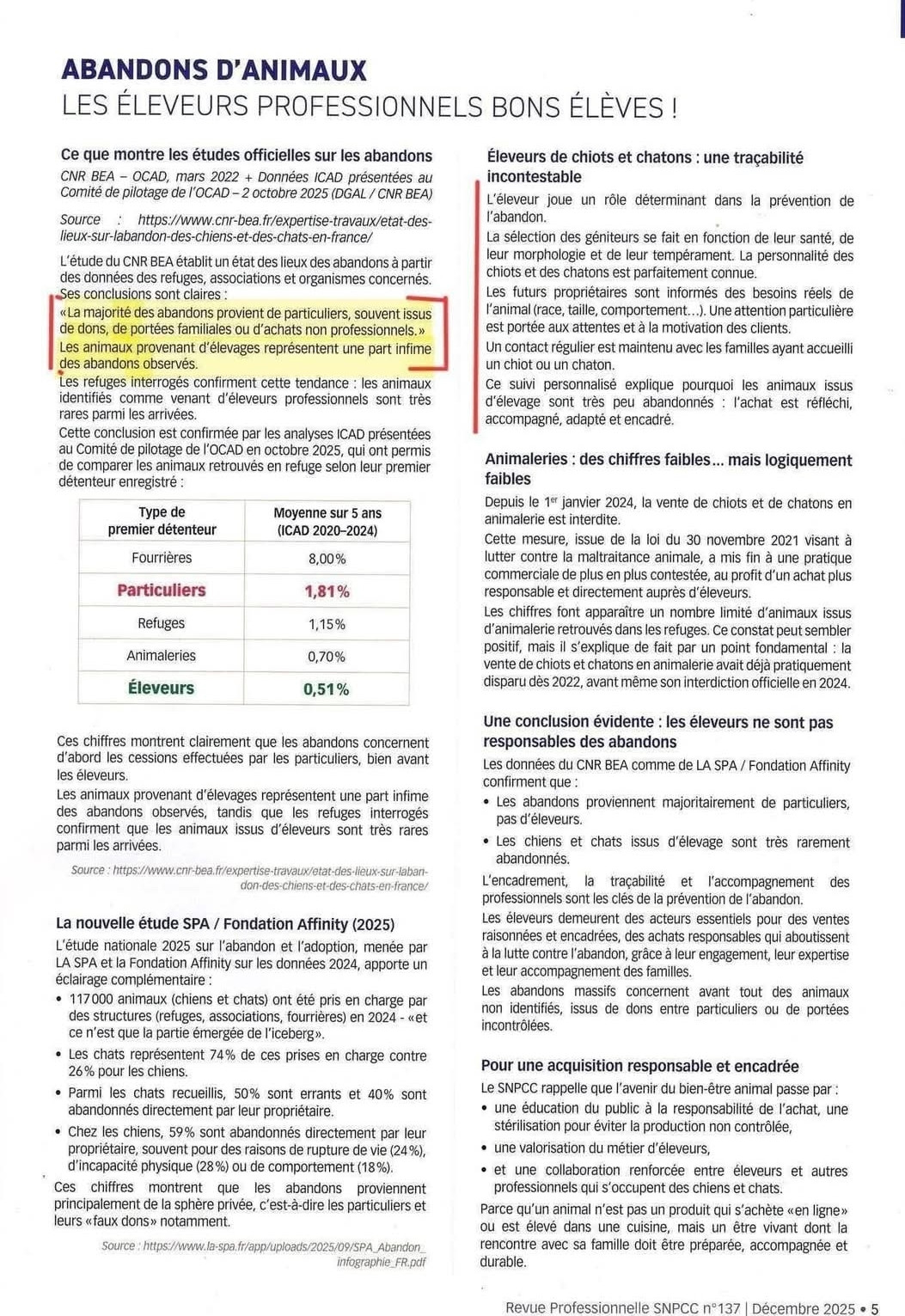 Ce rapport permet de déconstruire une idée reçue : non, les éleveurs professionnels ne remplissent pas les refuges. Au contraire, les données démontrent que les animaux abandonnés proviennent quasi exclusivement de la production “grise” (particuliers, dons, ventes sauvages).