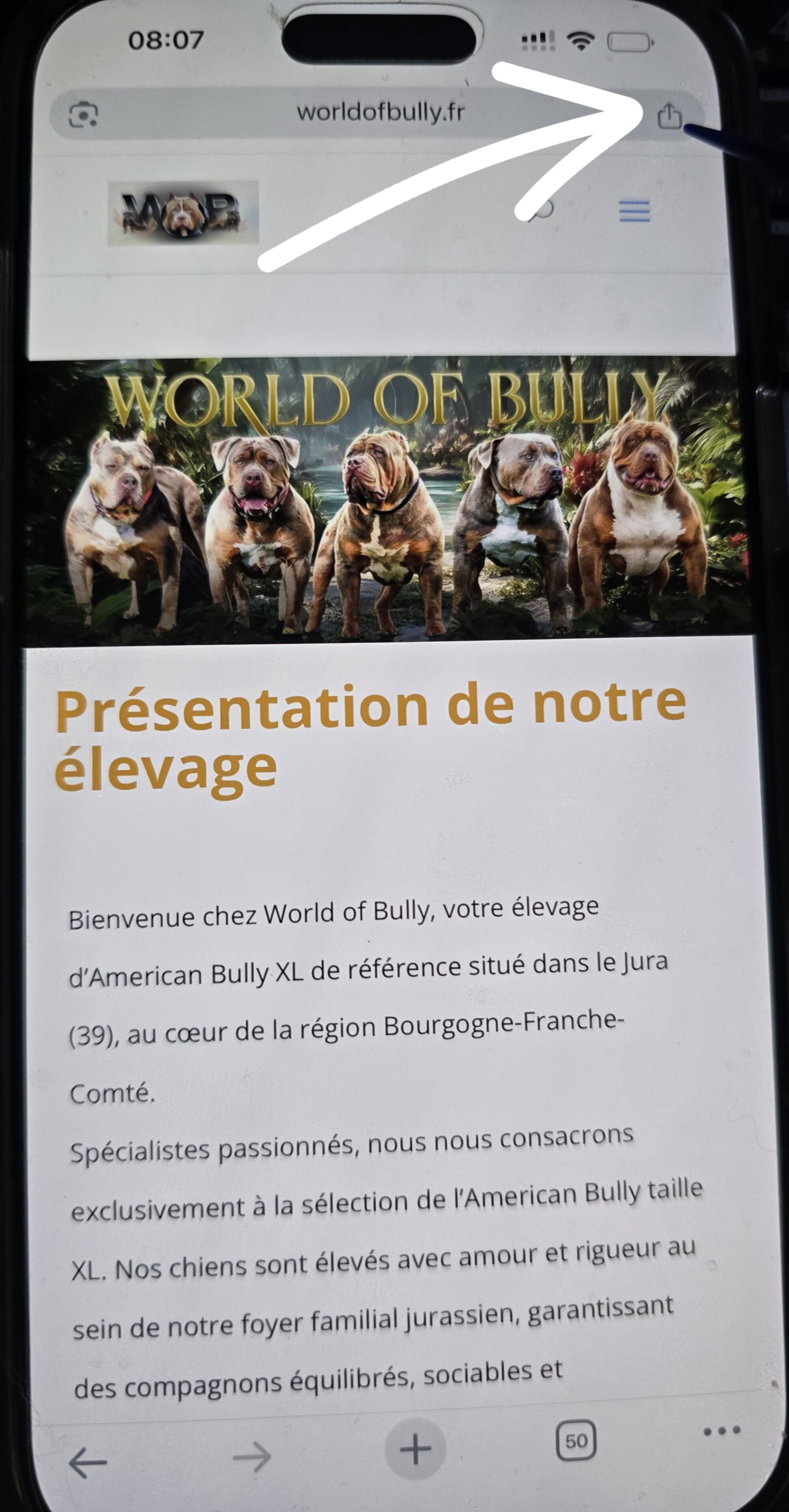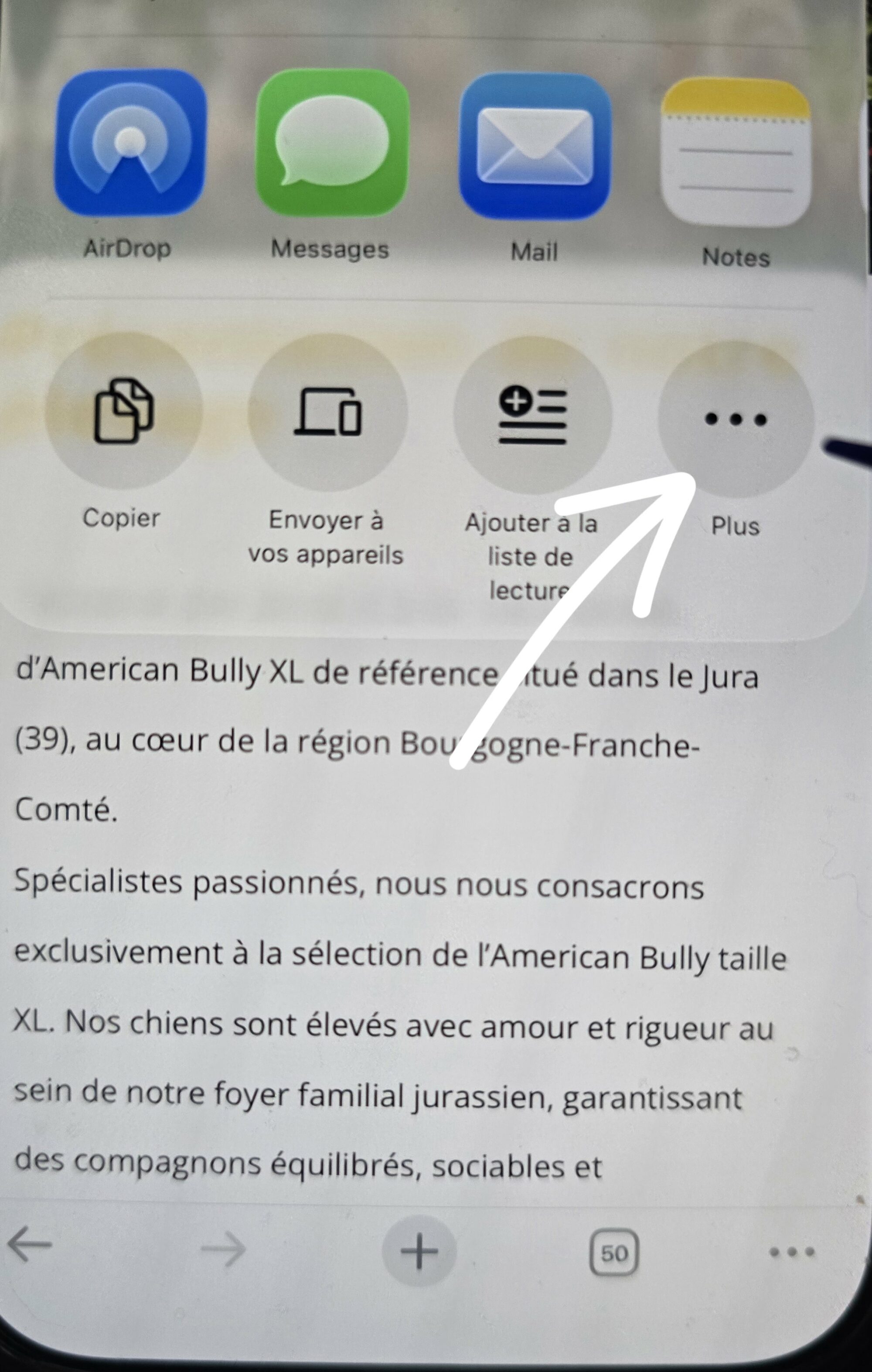 En bas de votre écran, cliquez sur l’icône Partager (le carré avec une flèche vers le haut).