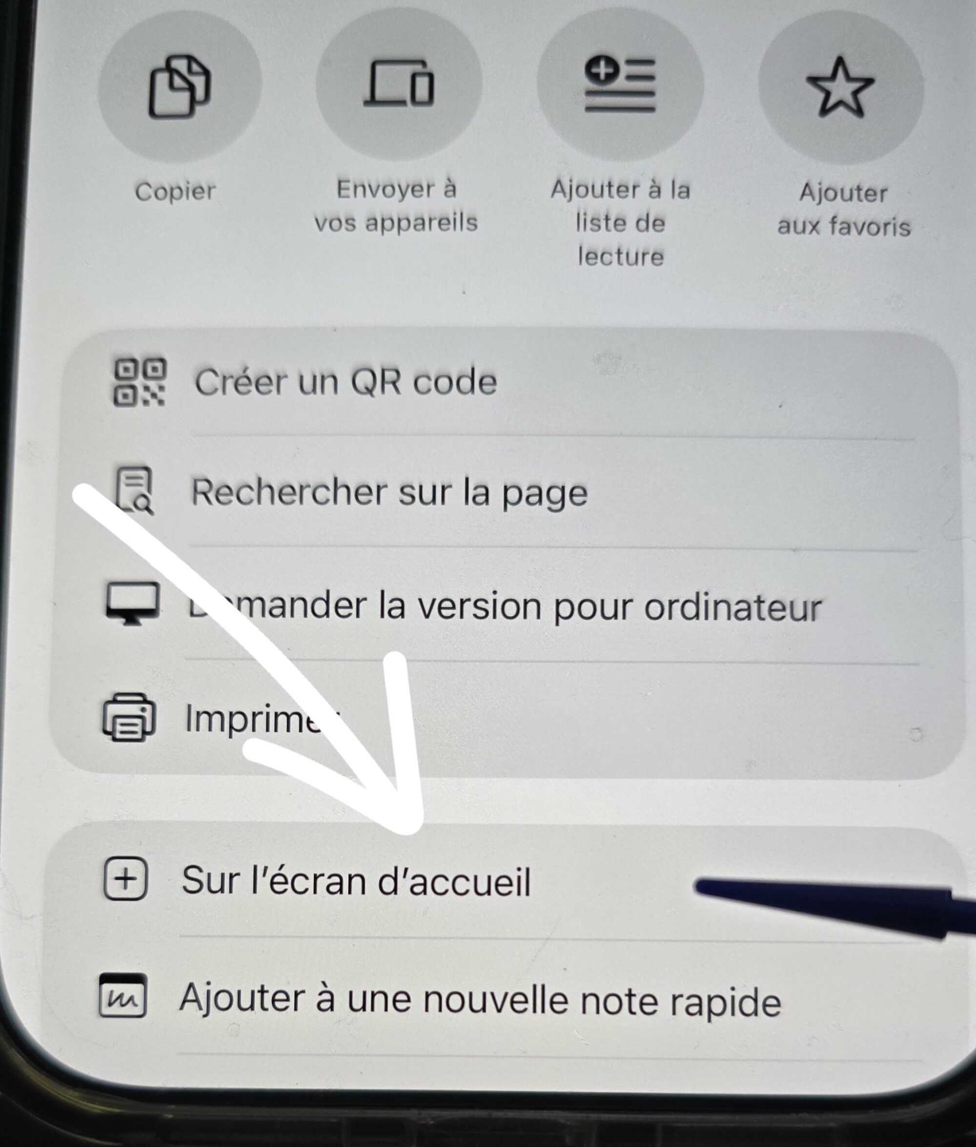 Faites défiler les options et cliquez sur « Sur l’écran d’accueil ».