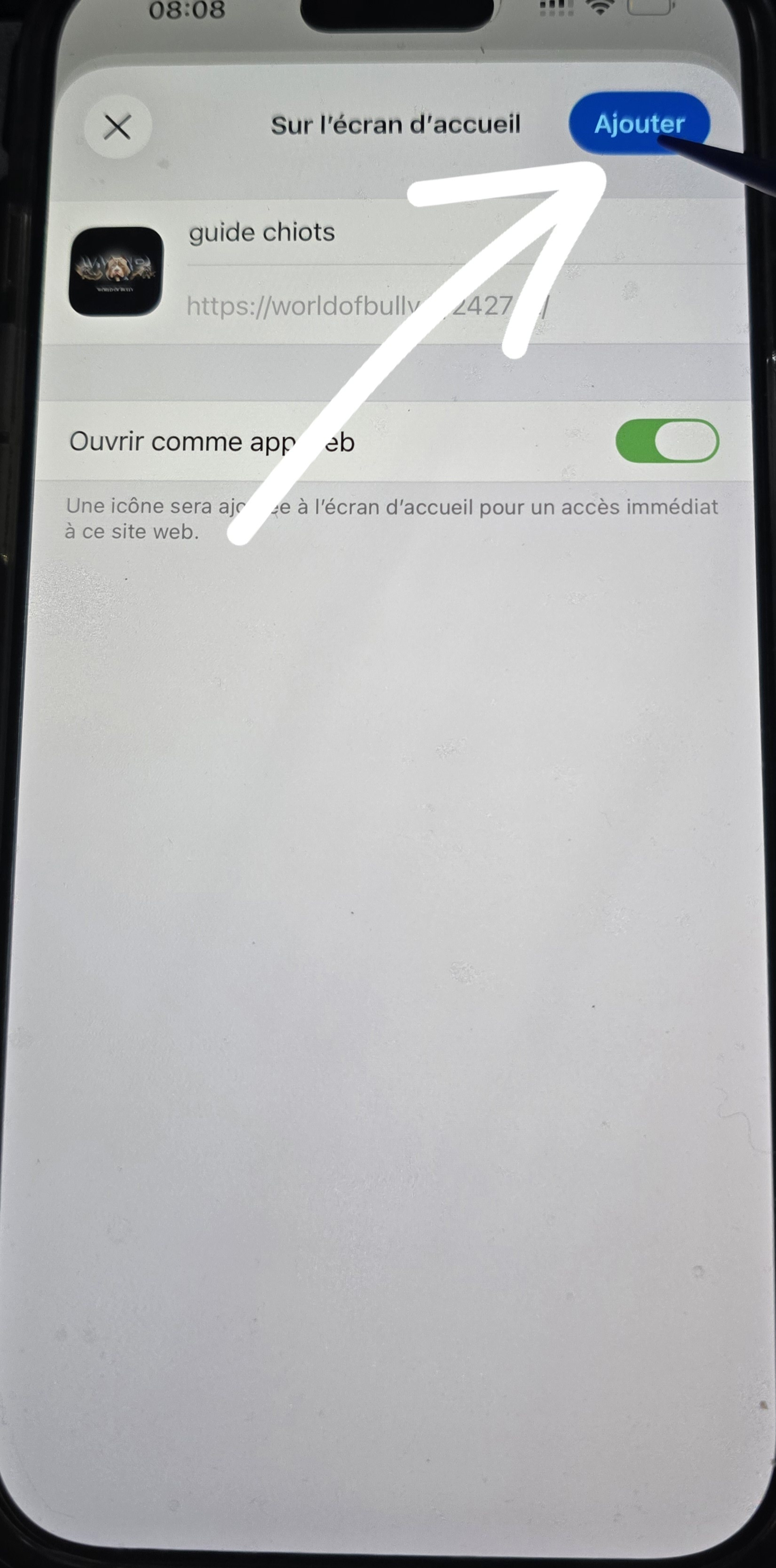 Cliquez sur « Installer l’application » (ou « Ajouter à l’écran d’accueil »).